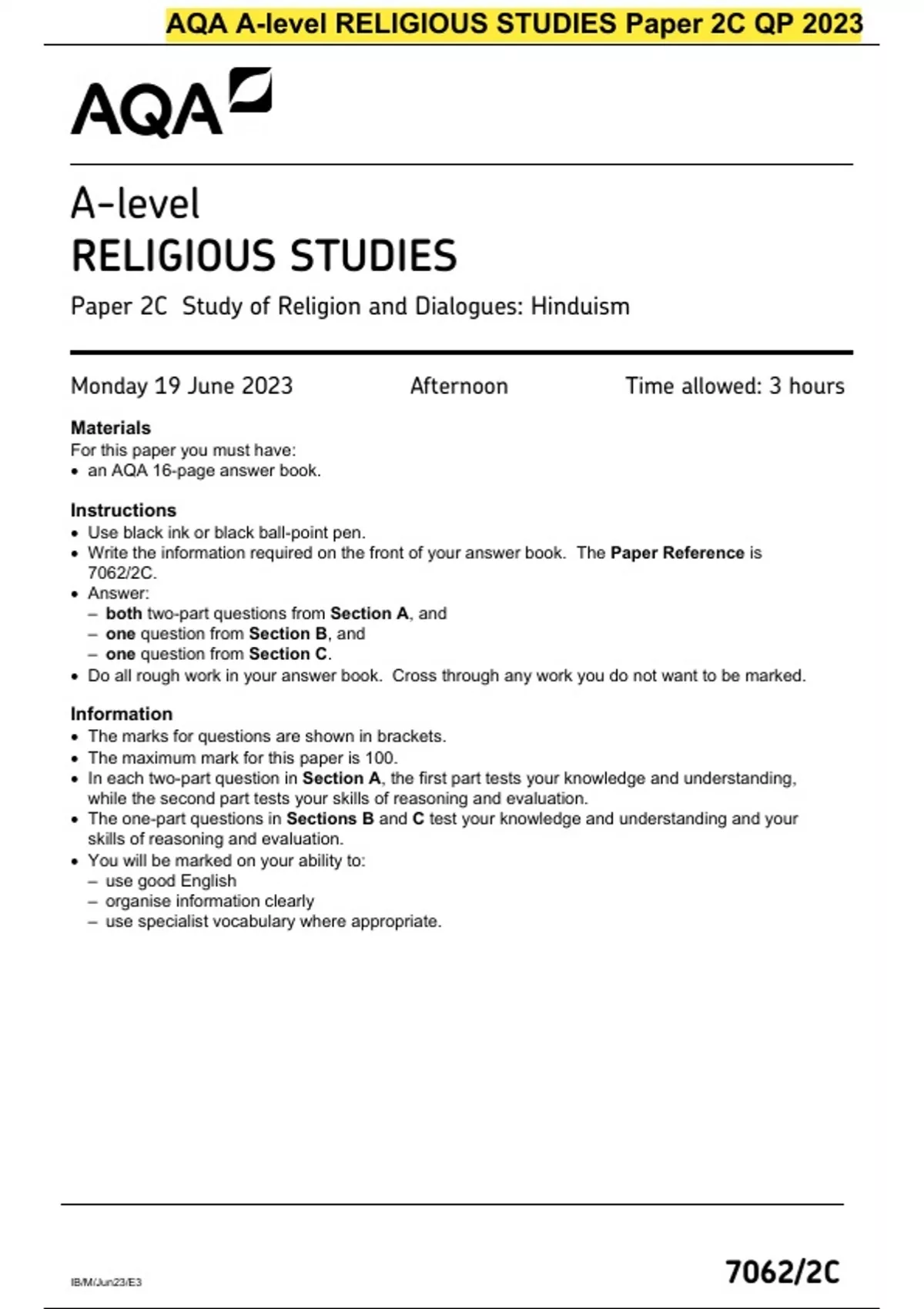 AQA A-level RELIGIOUS STUDIES Paper 2C QP 2023