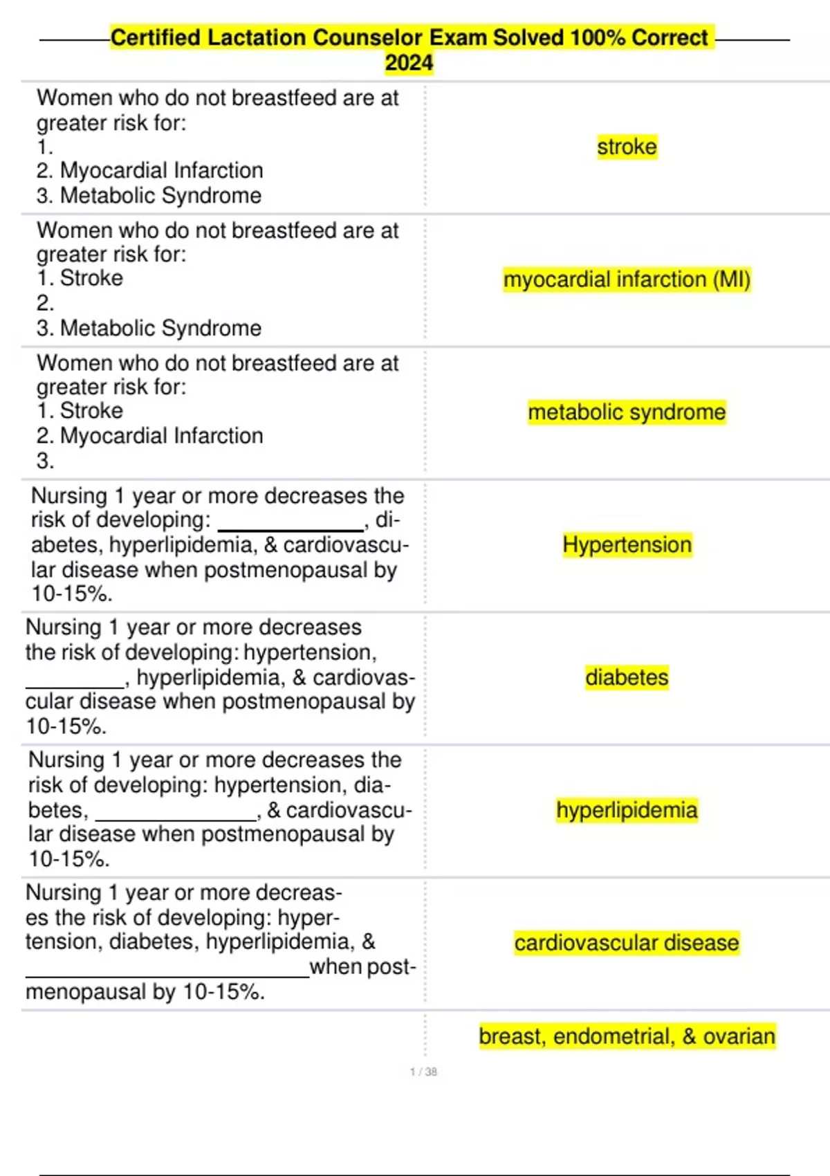 Certified Lactation Counselor Exam Solved 100% Correct 2024,Certified Lactation Counselor Exam Solved 100% Correct 2024
