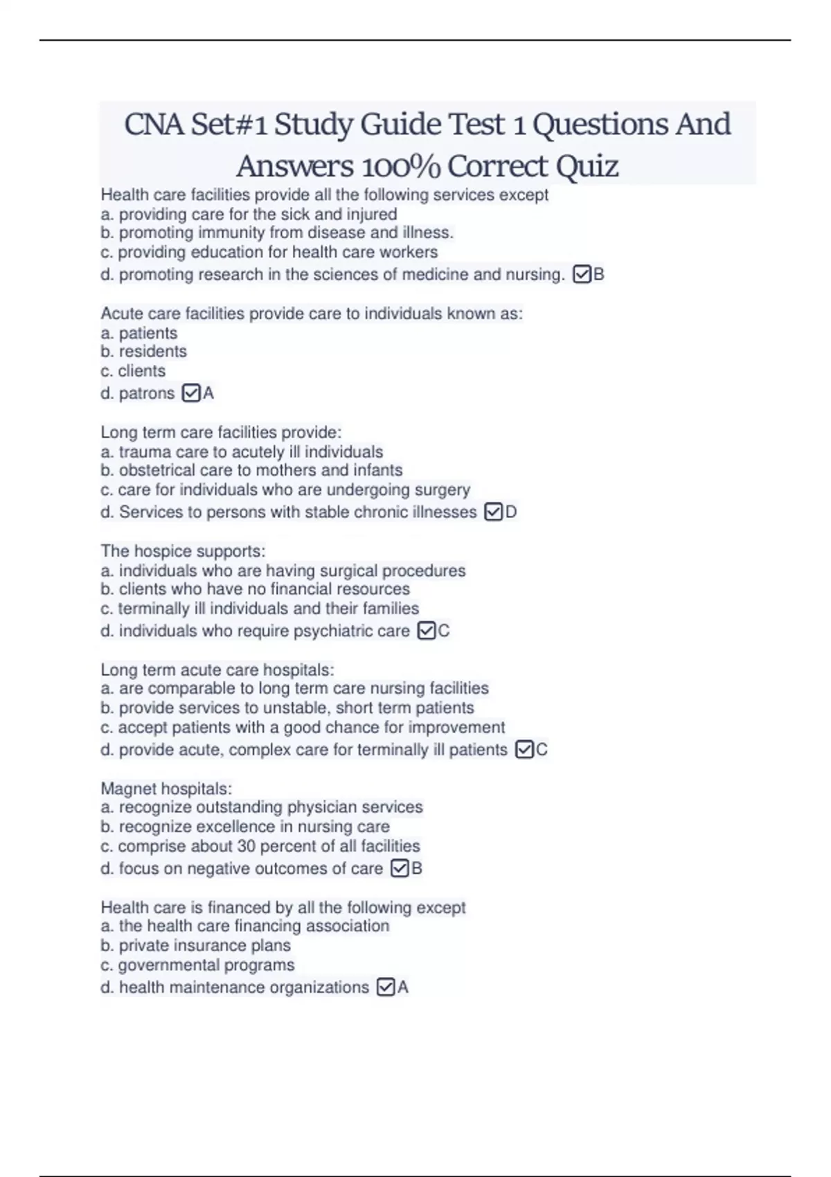 CNA Set#1 Study Guide Test 1 Questions And Answers 100% Correct Quiz CNA Set#1 Study Guide Test 1 Questions And Answers 100% Correct Quiz