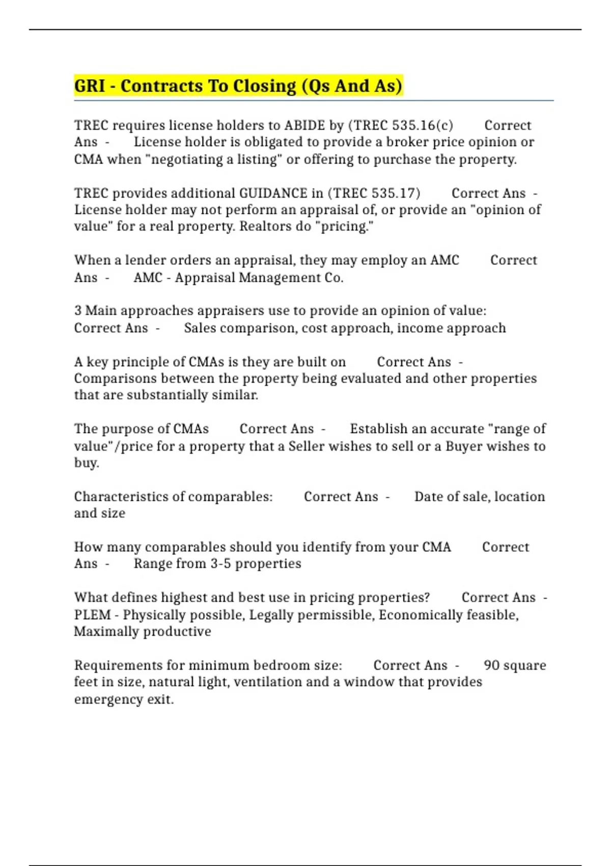 TREC provides additional GUIDANCE in (TREC 535.17) Correct Ans -