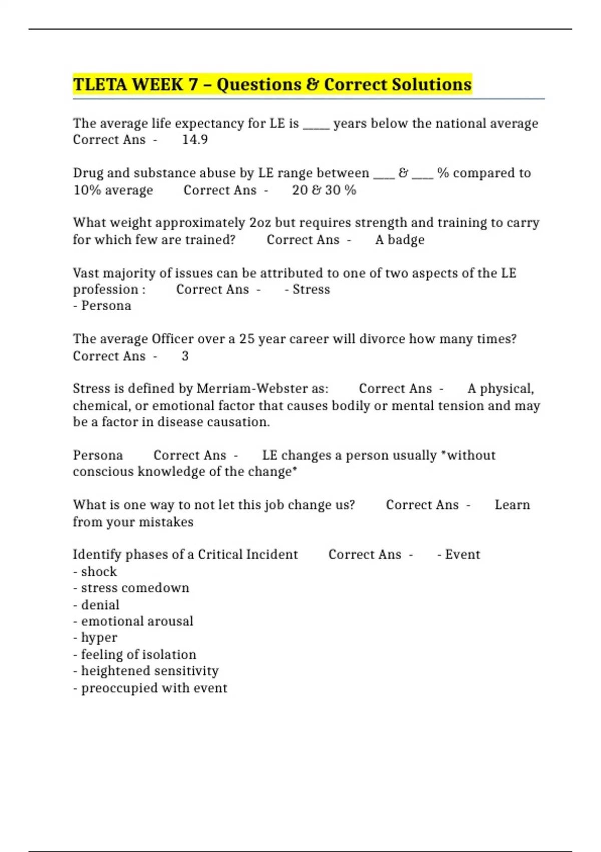 TLETA WEEK 7 – Questions & Correct Solutions