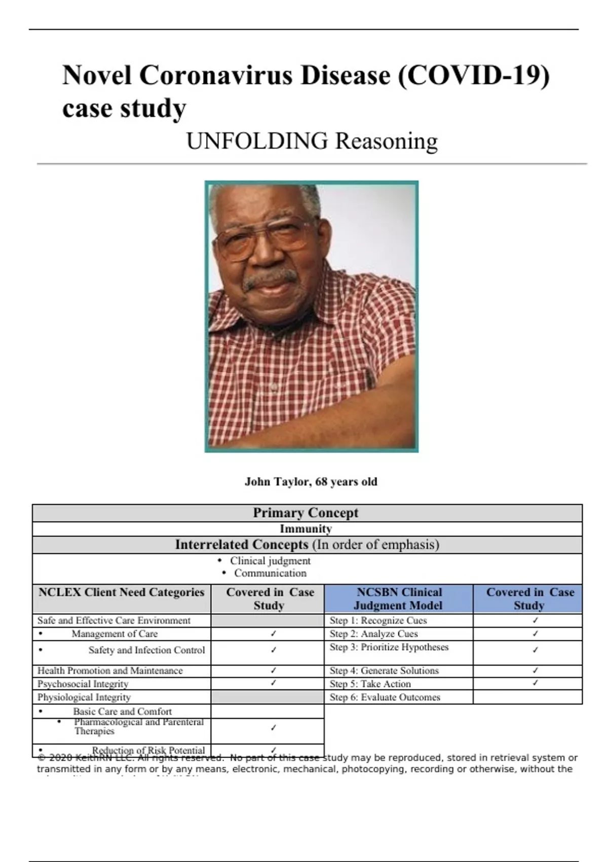 Novel Coronavirus Disease (COVID-19) case study UNFOLDING Reasoning