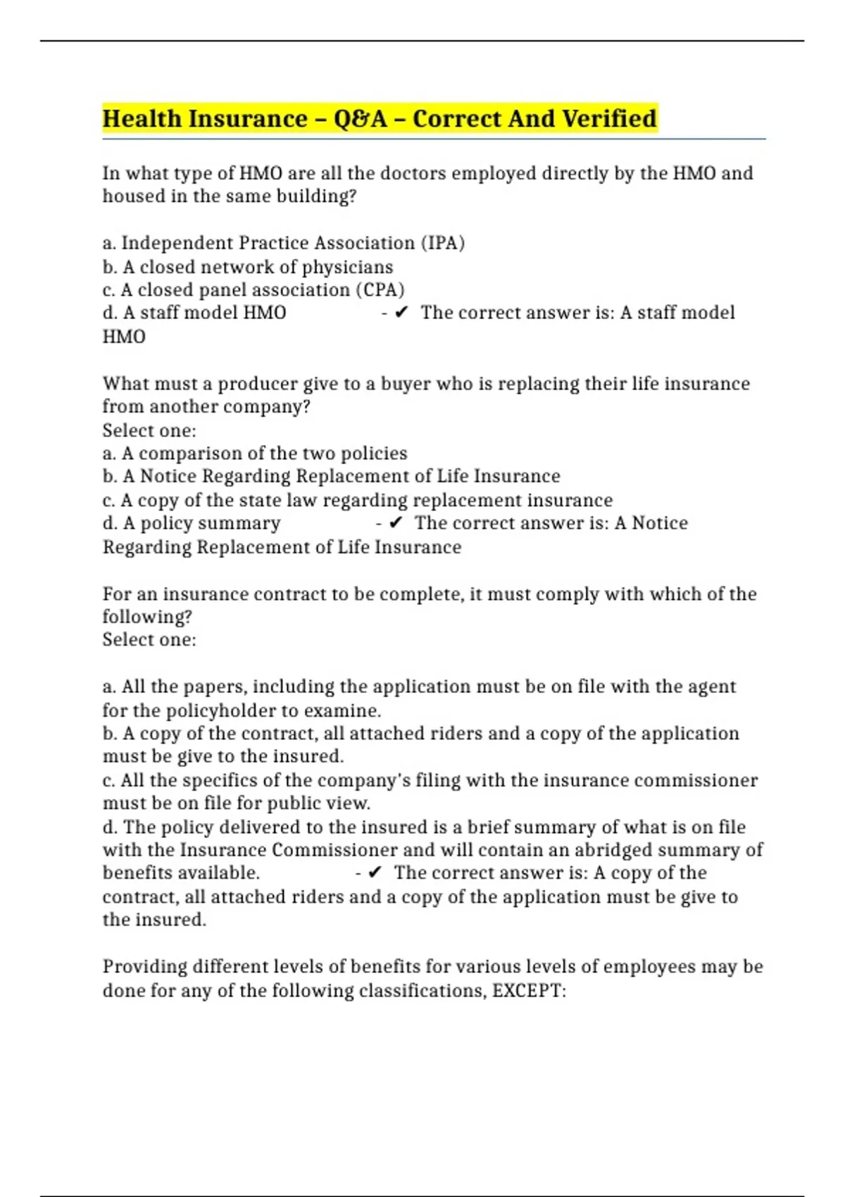 d. A staff model HMO - ✔️ The correct answer is: A staff model