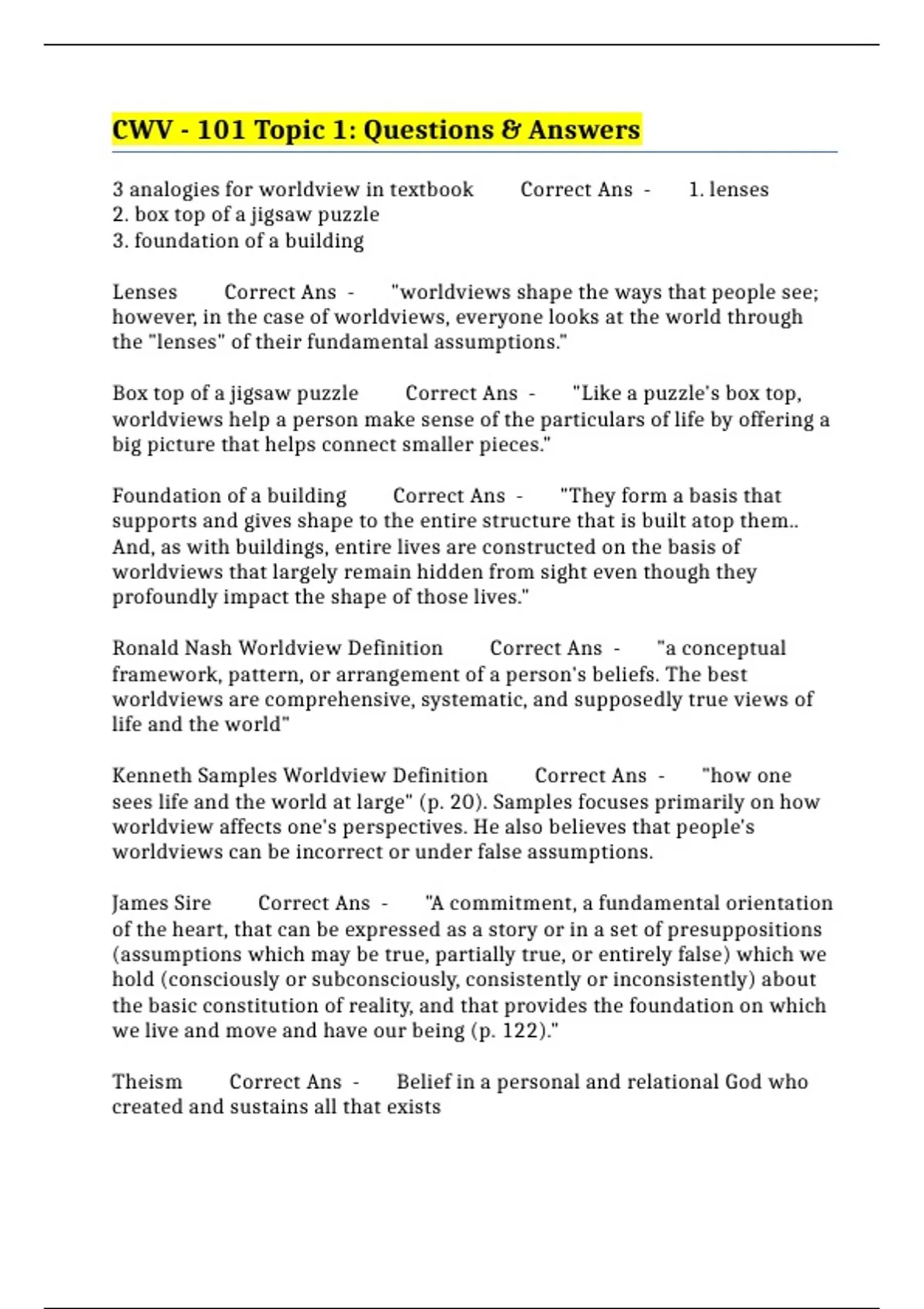 Kenneth Samples Worldview Definition Correct Ans - "how one