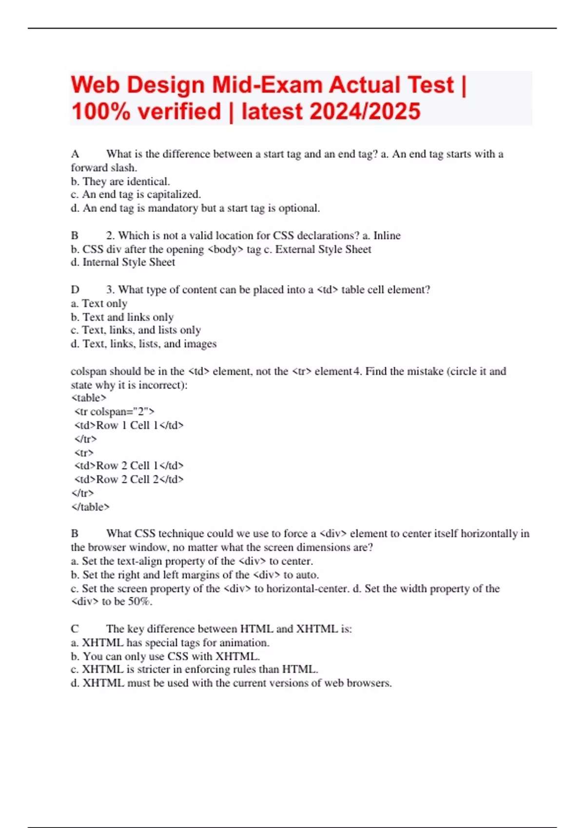 Web Design Mid-Exam Actual Test | 100% verified | latest 2024/2025