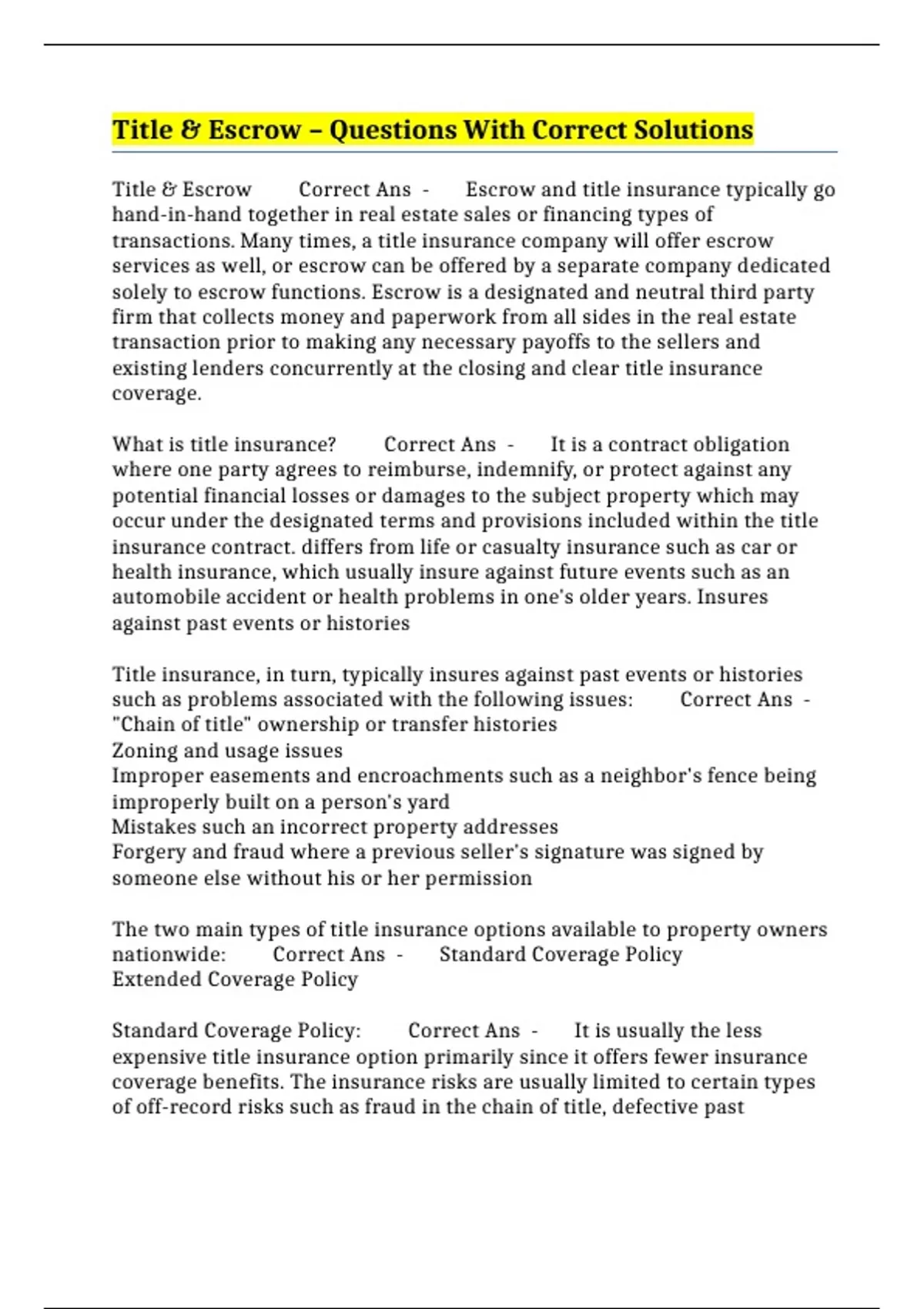 Title & Escrow – Questions With Correct Solutions