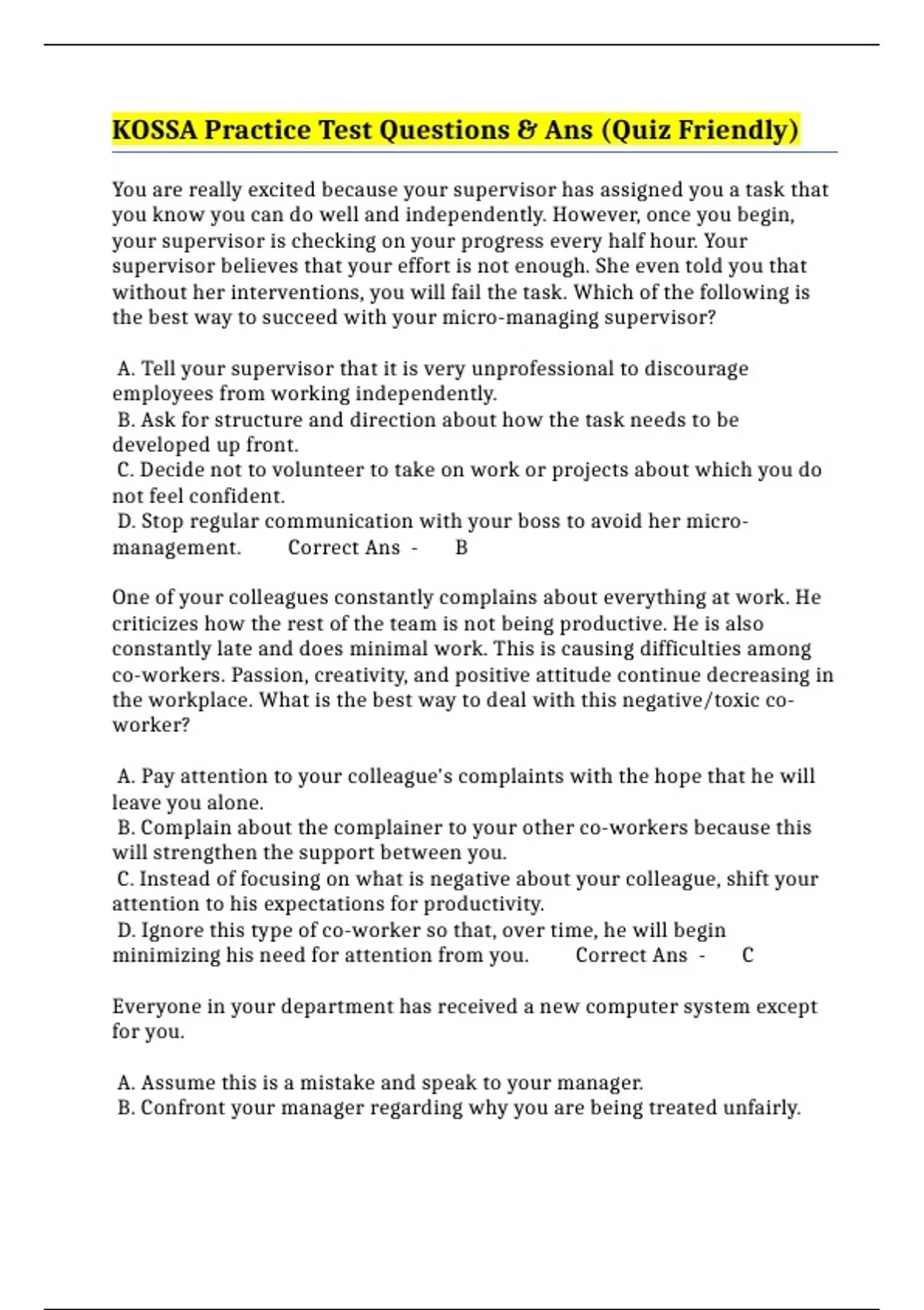 KOSSA Practice Test Questions & Ans (Quiz Friendly)