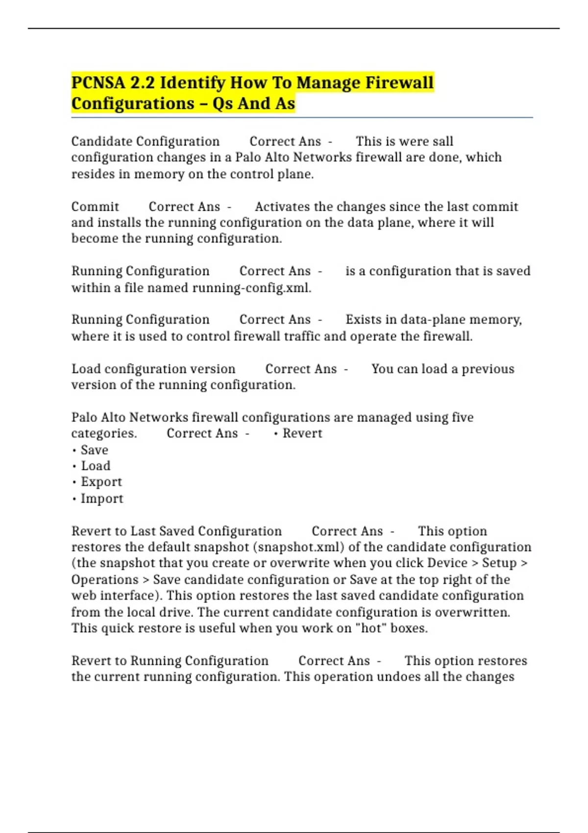 PCNSA 2.2 Identify How To Manage Firewall Configurations – Qs And As