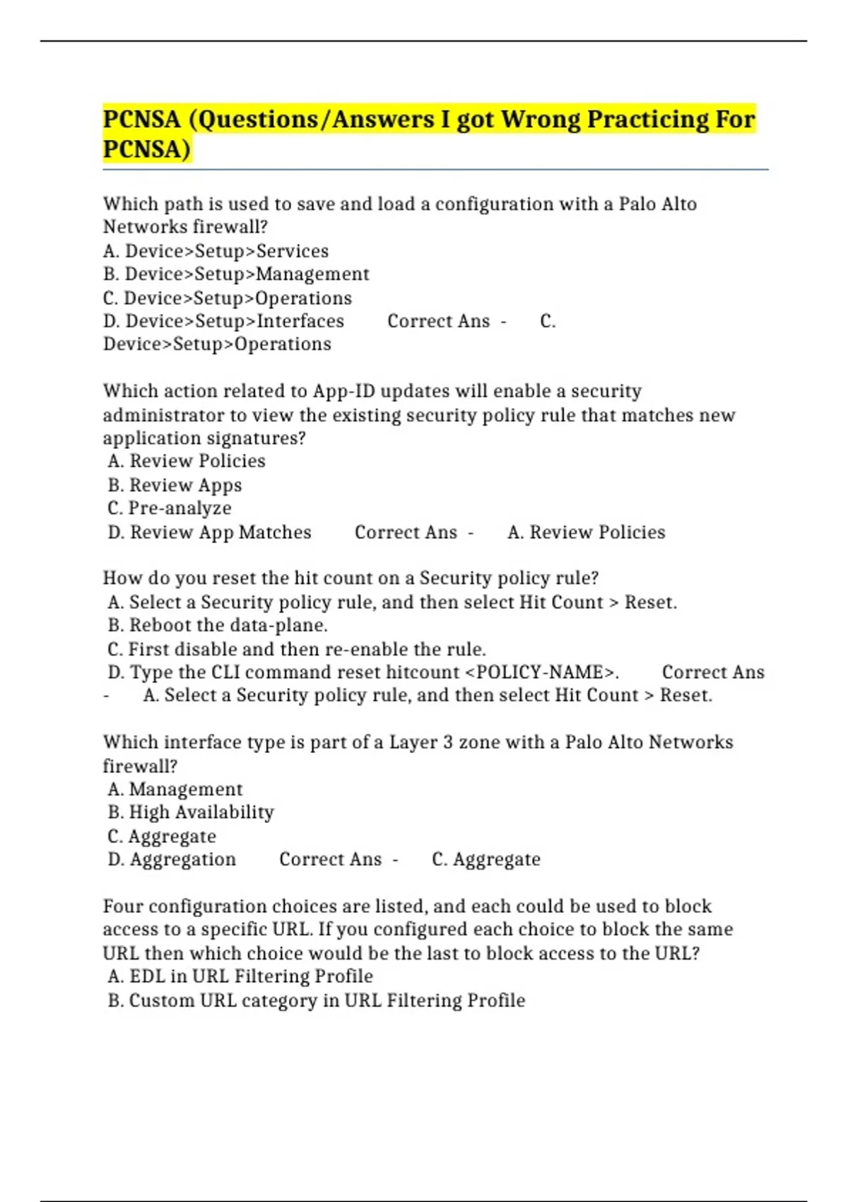 D. PAN-DB URL category in URL Filtering Profile Correct Ans - C.