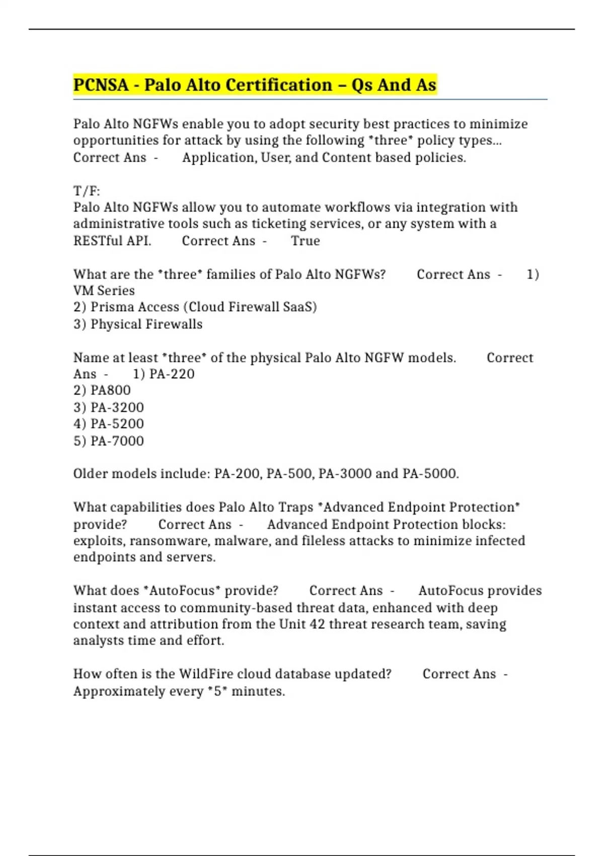 G) Cloud Security Correct Ans - *C)* WildFire