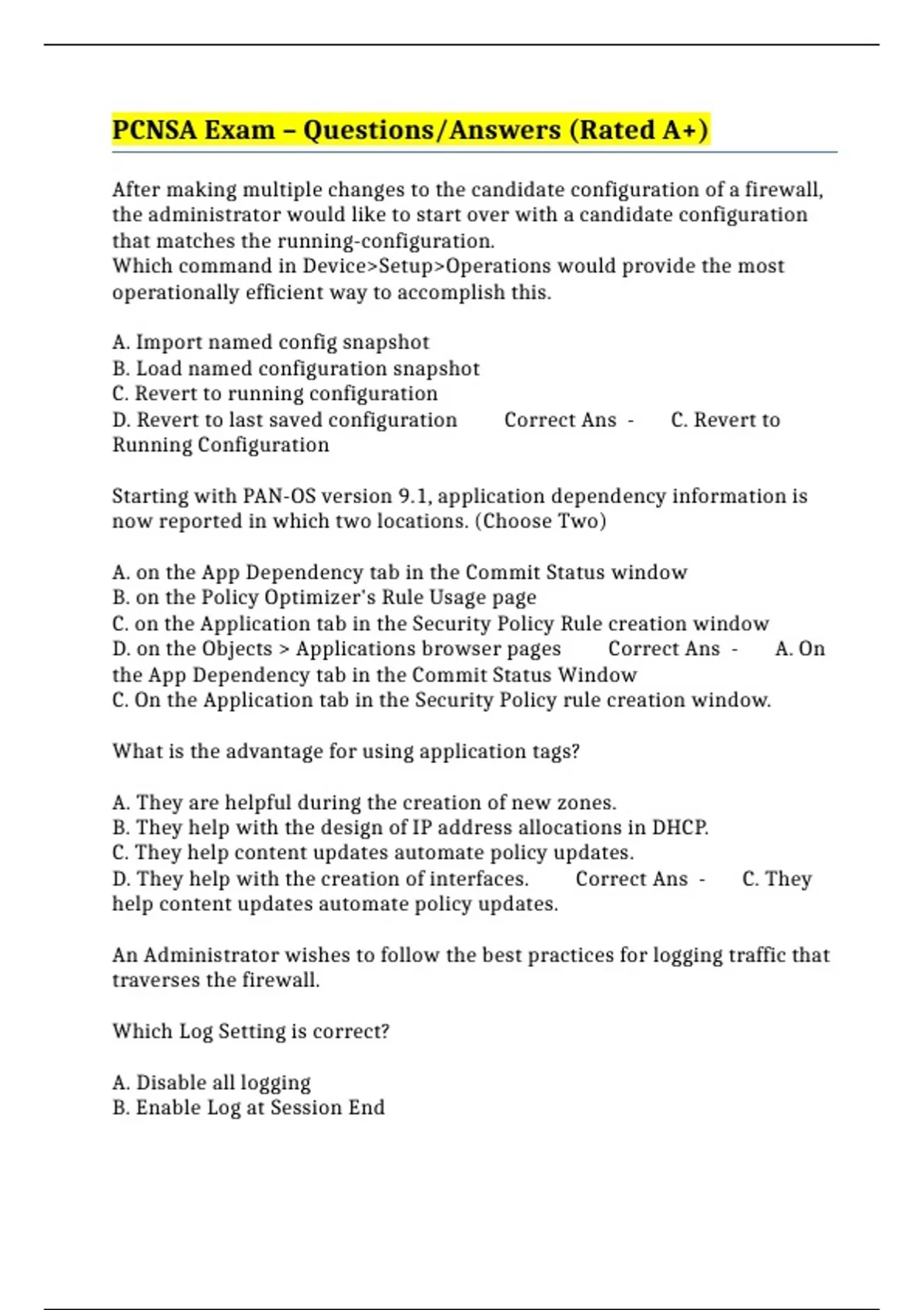 PCNSA Exam – Questions/Answers (Rated A+)