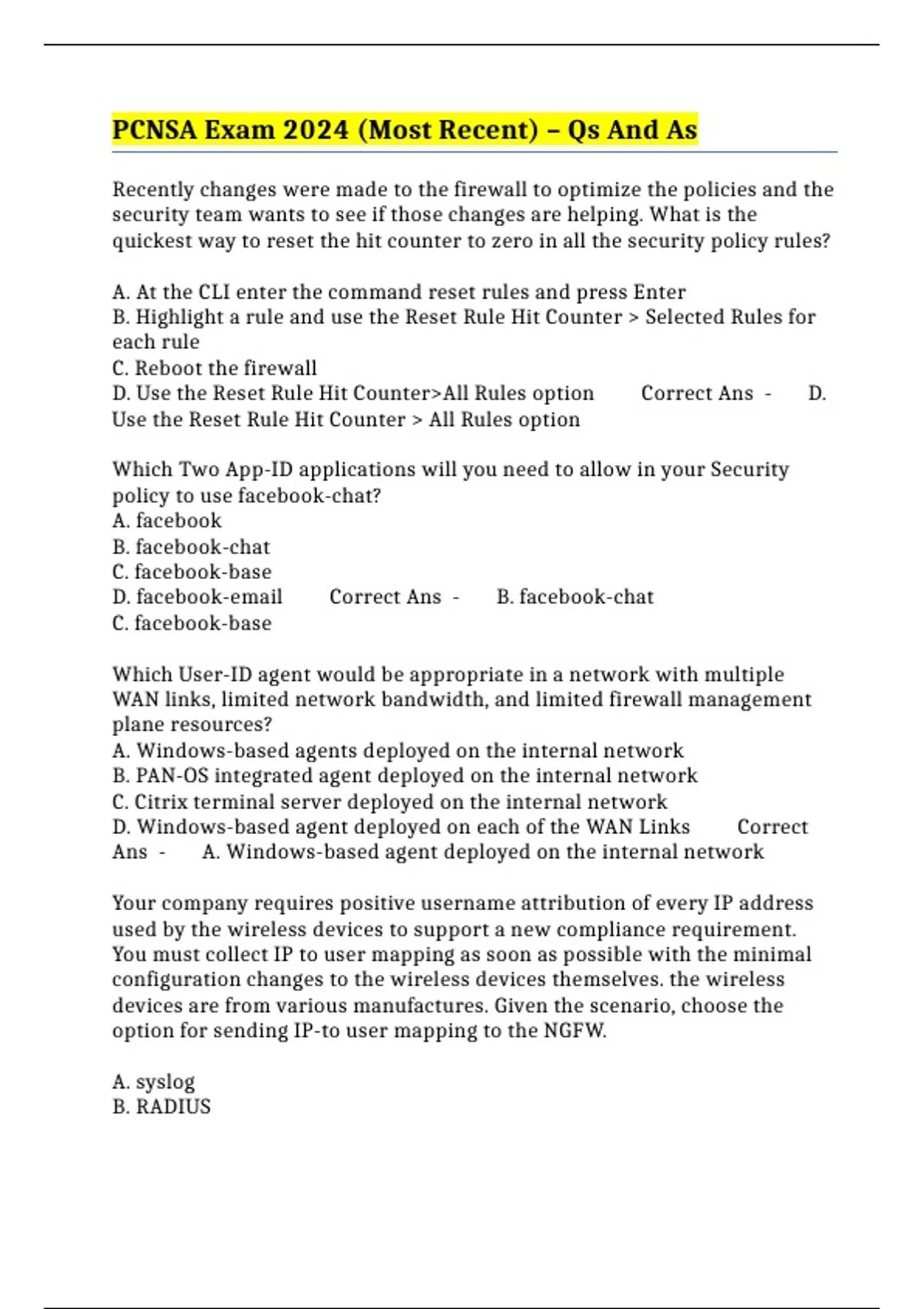 PCNSA Exam 2024 (Most Recent) – Qs And As