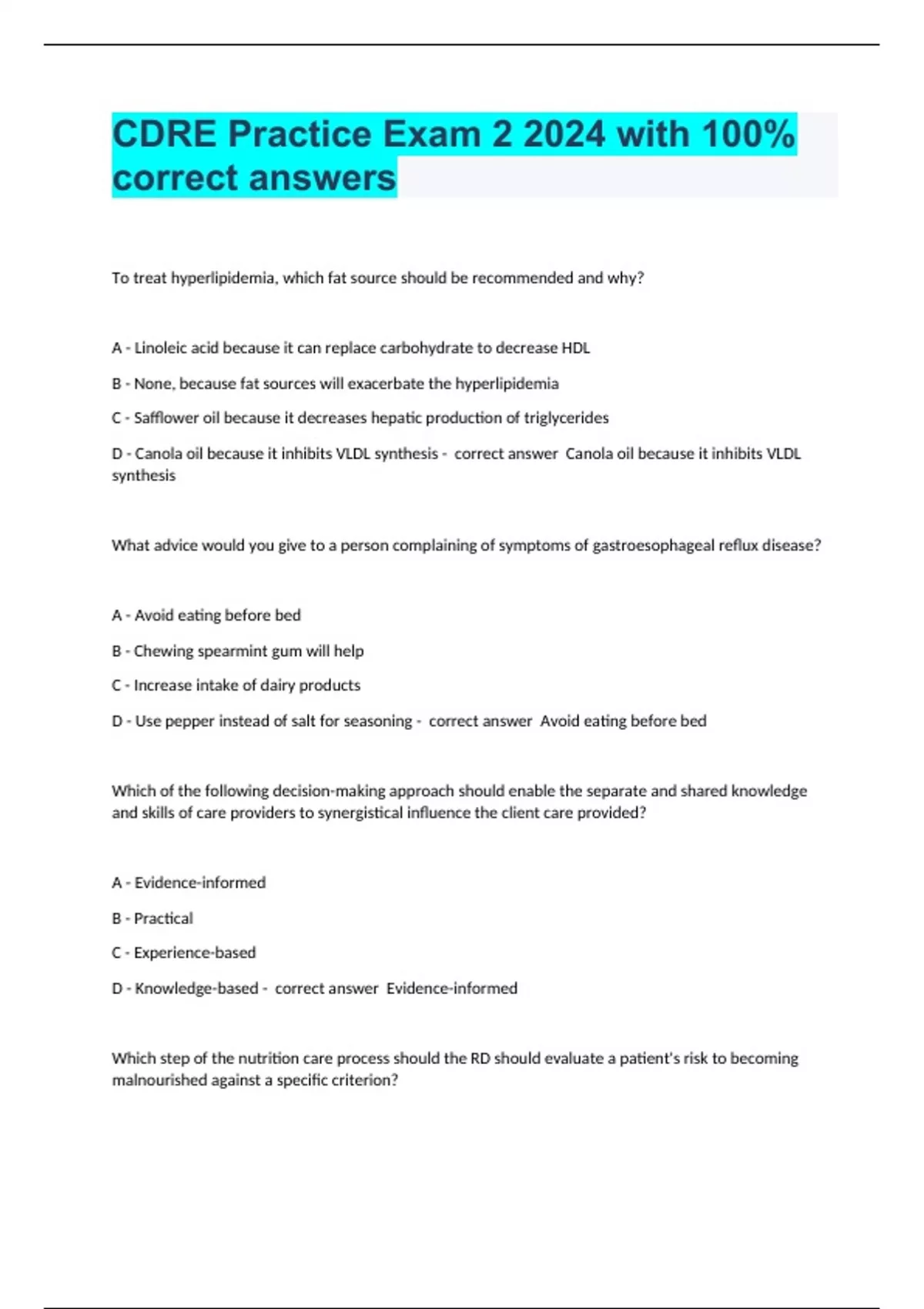 D - Knowledge-based - correct answer Evidence-informed