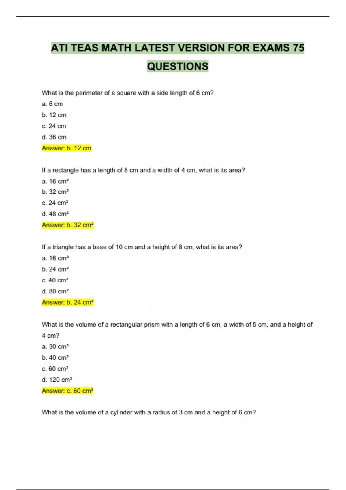 Answer: b. 32 cm²