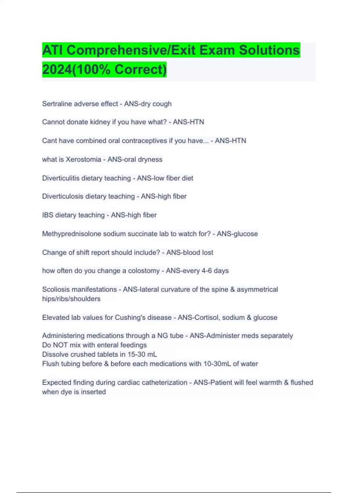 ATI Comprehensive/Exit Exam Solutions 2024(100% Correct)