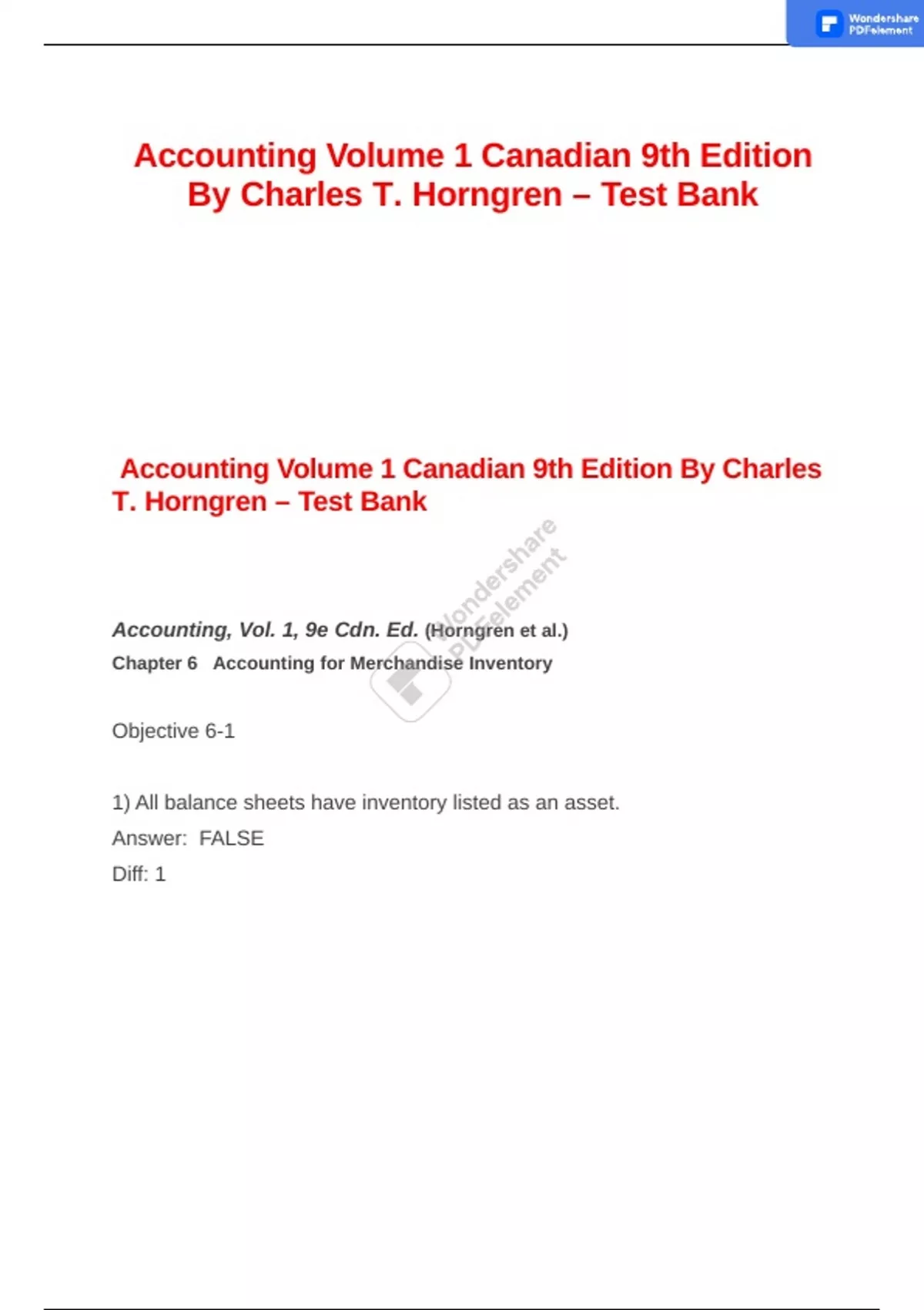 ACCOUNTING VOLUME 1 CANADIAN 9TH EDITION CHARLES T. HORNGREN TEST BANK