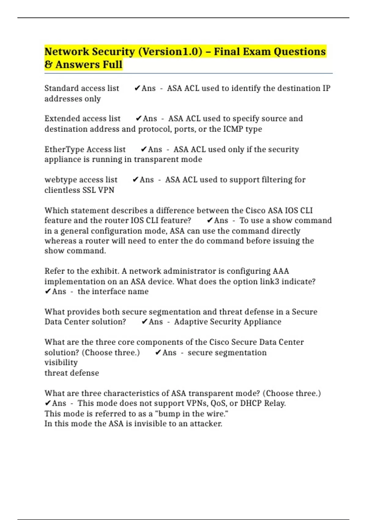 EtherType Access list ✔️Ans - ASA ACL used only if the security