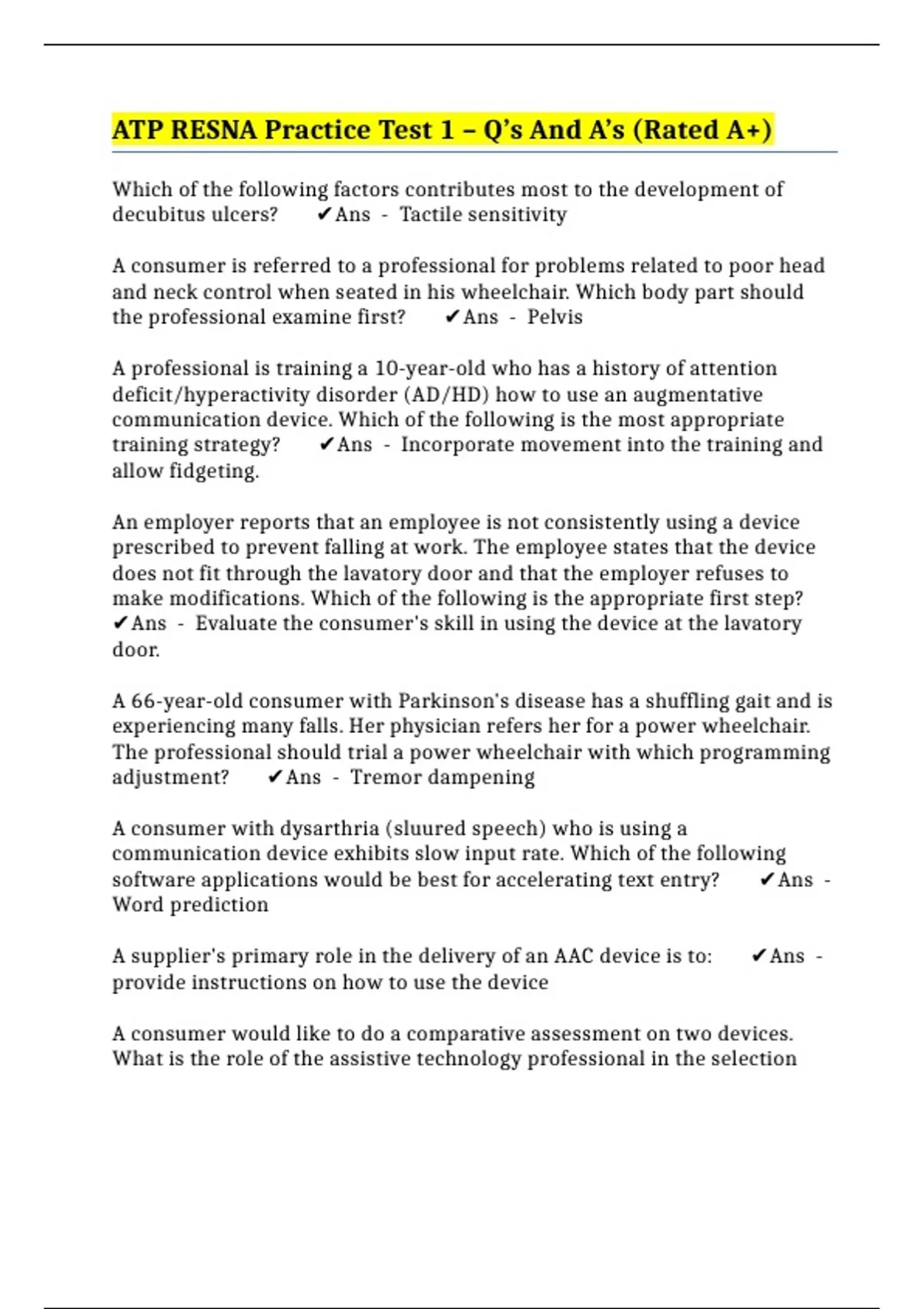 consumer's seating and mobility needs is to: ✔️Ans - provide