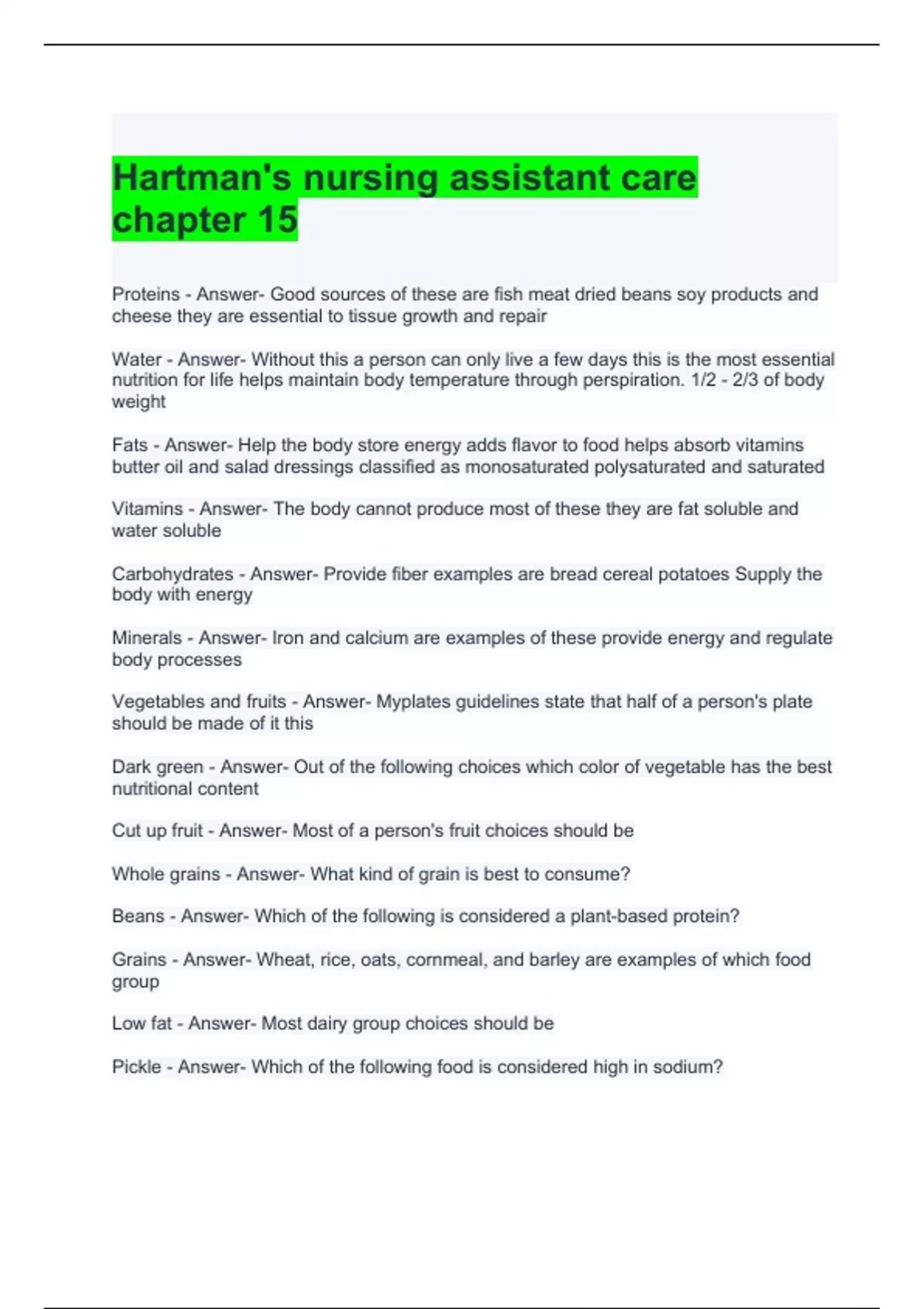 Hartman s Nursing Assistant Care Exams Bundle (Graded A)