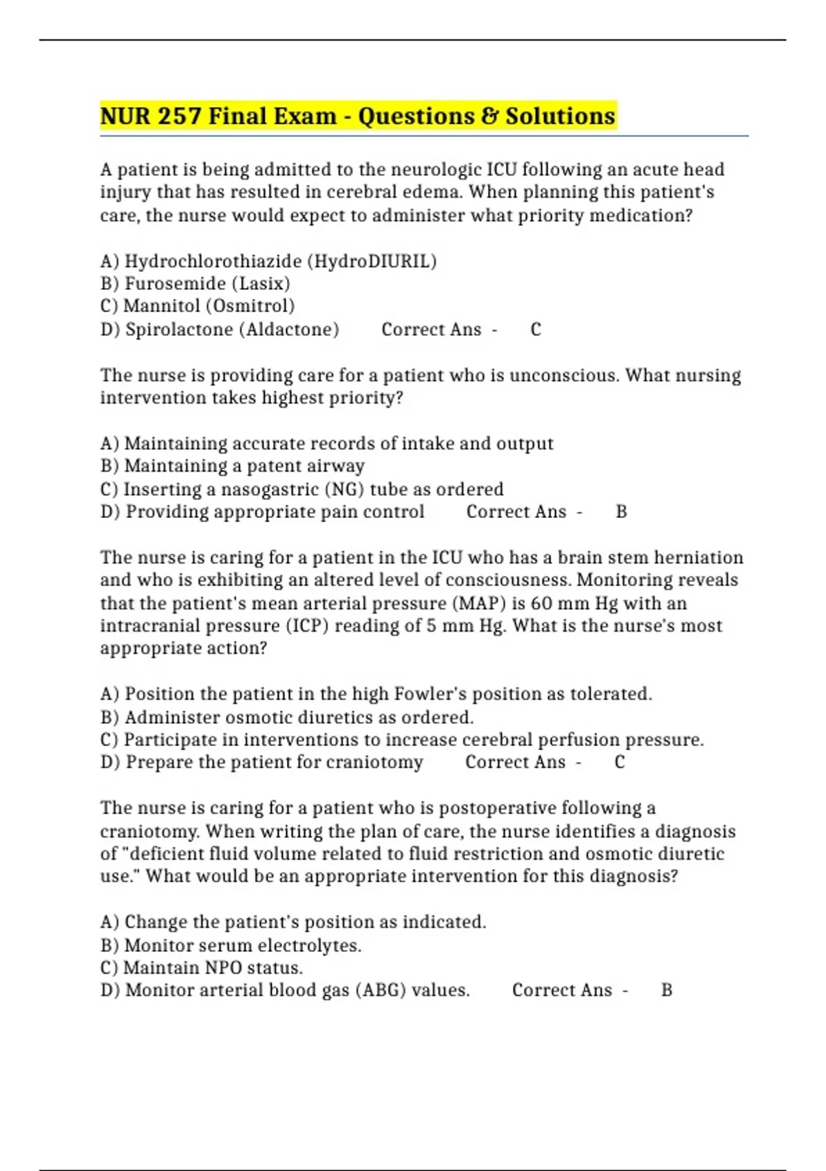 D) Prepare the patient for craniotomy Correct Ans - C