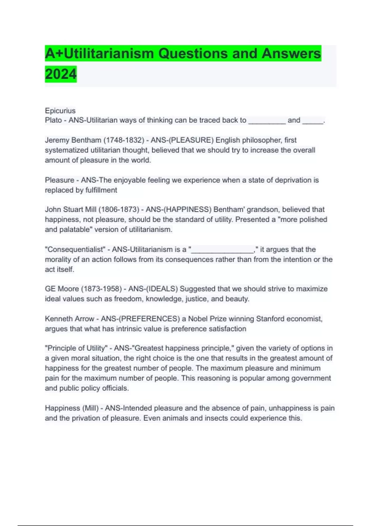 A+Utilitarianism Questions and Answers 2024
