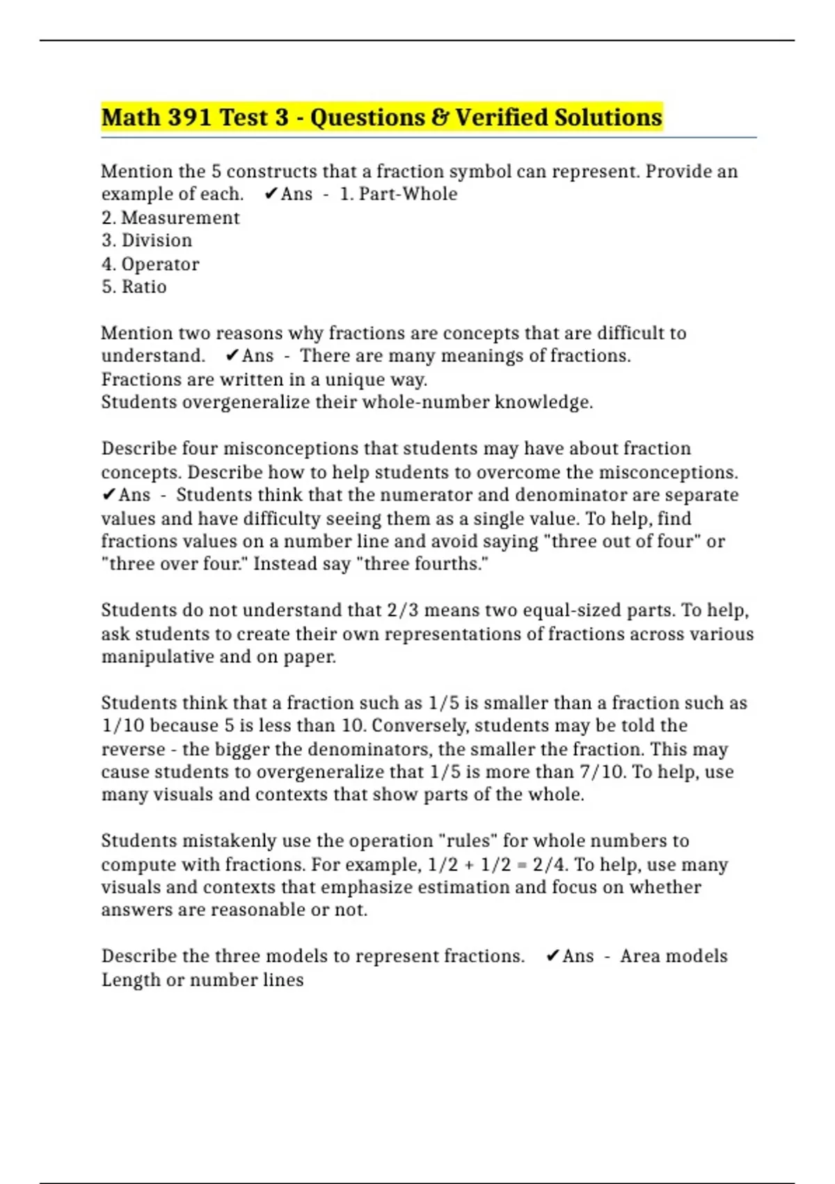 ✔️Ans - Students think that the numerator and denominator are separate