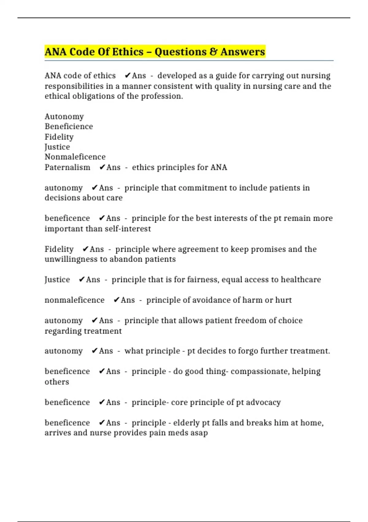 ANA code of ethics ✔️Ans - developed as a guide for carrying out nursing