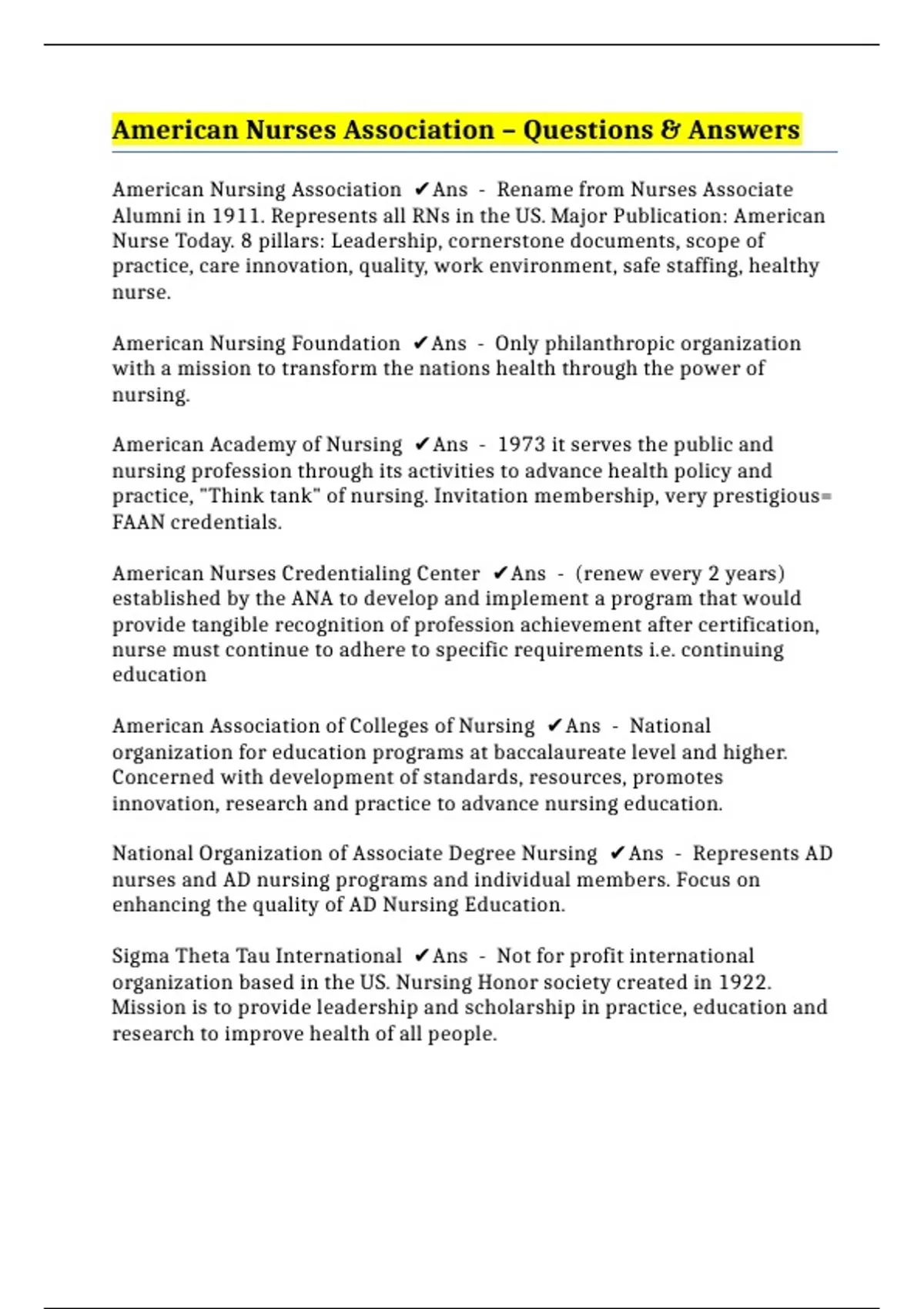 American Nursing Association ✔️Ans - Rename from Nurses Associate