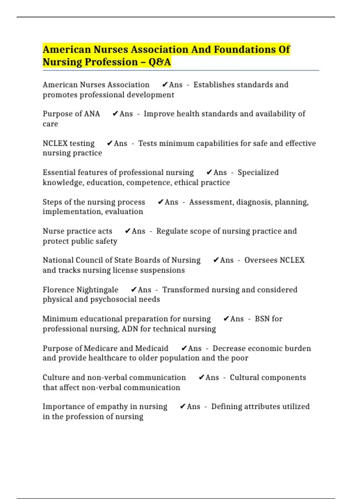 Purpose of ANA ✔️Ans - Improve health standards and availability of