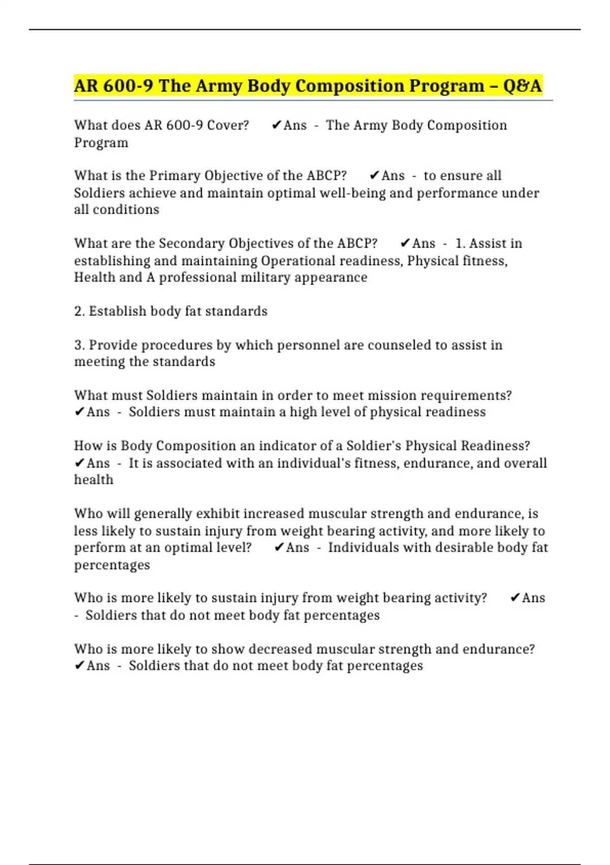 What does AR 600-9 Cover? ✔️Ans - The Army Body Composition