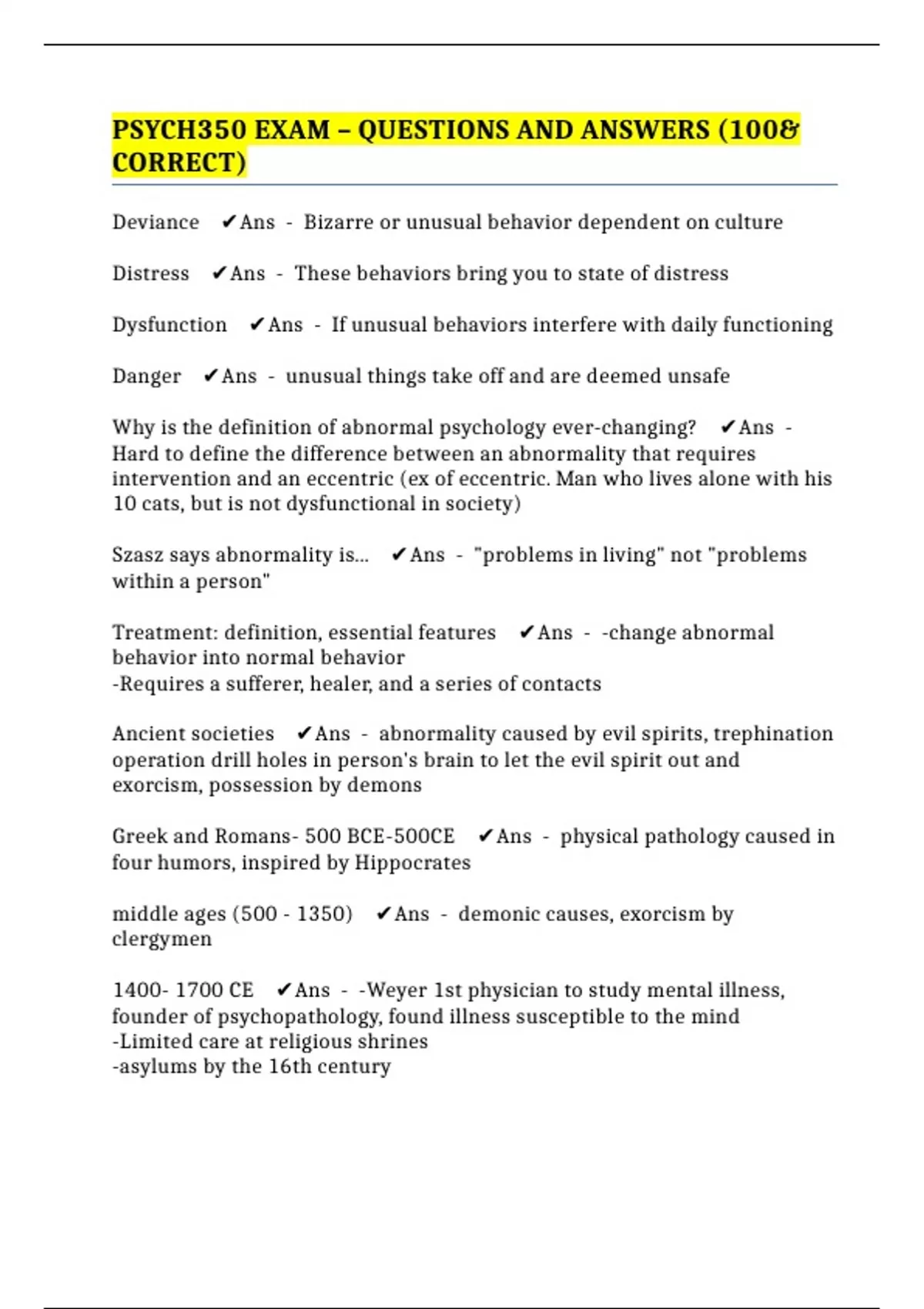 Deviance ✔️Ans - Bizarre or unusual behavior dependent on culture