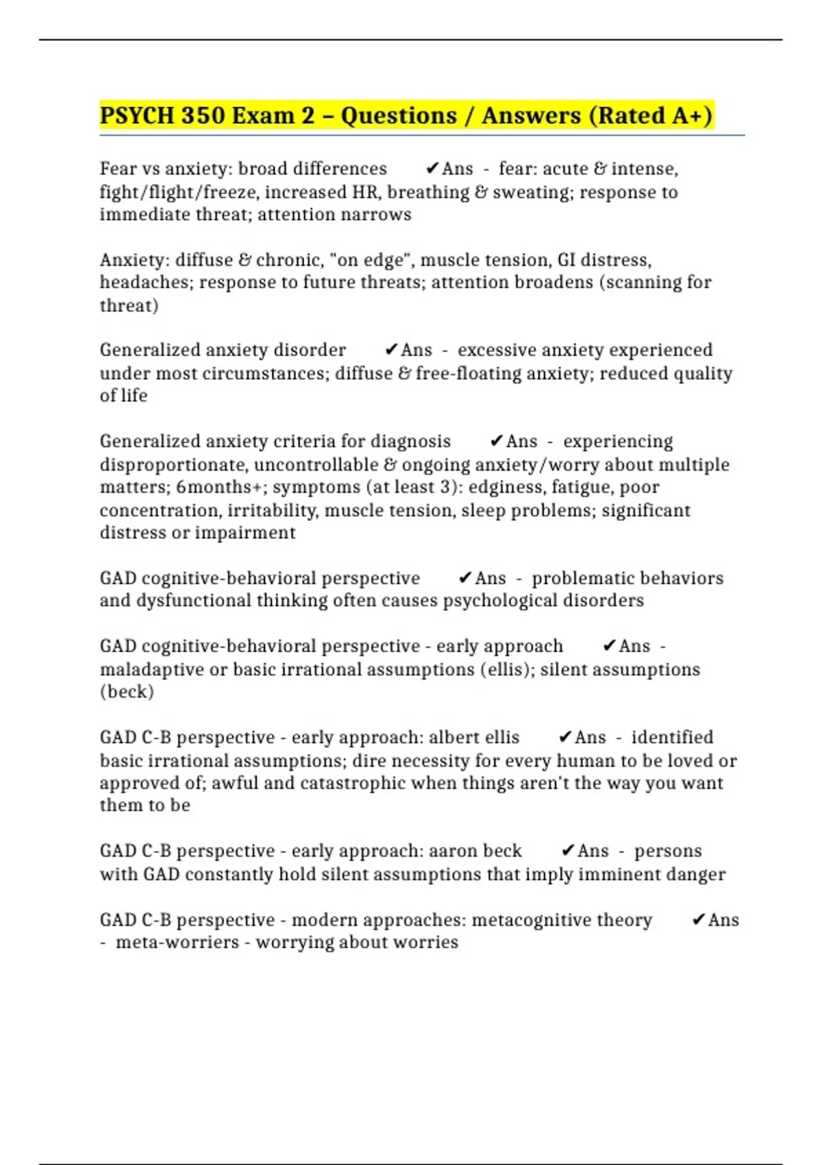 GAD cognitive-behavioral treatment: breaking down worry ✔️Ans -