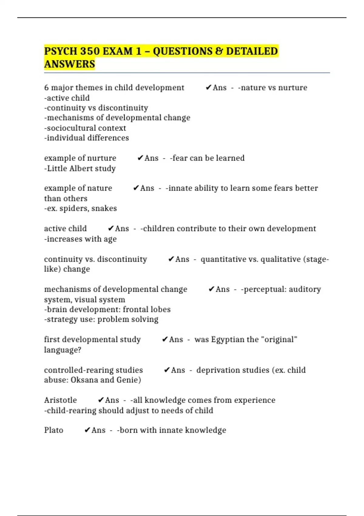 PSYCH 350 EXAM 1 – QUESTIONS & DETAILED