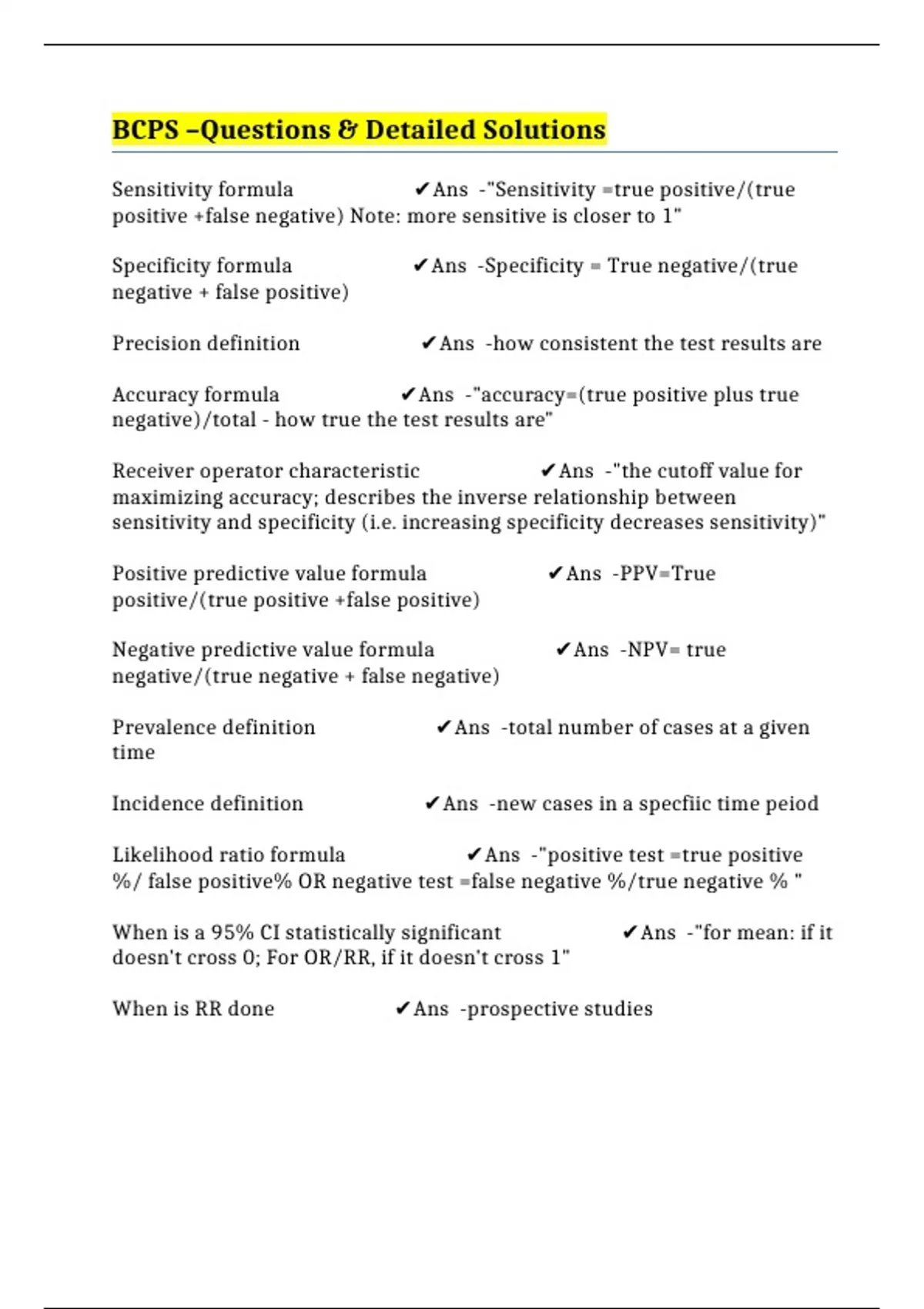 Sensitivity formula ✔️Ans -"Sensitivity =true positive/(true