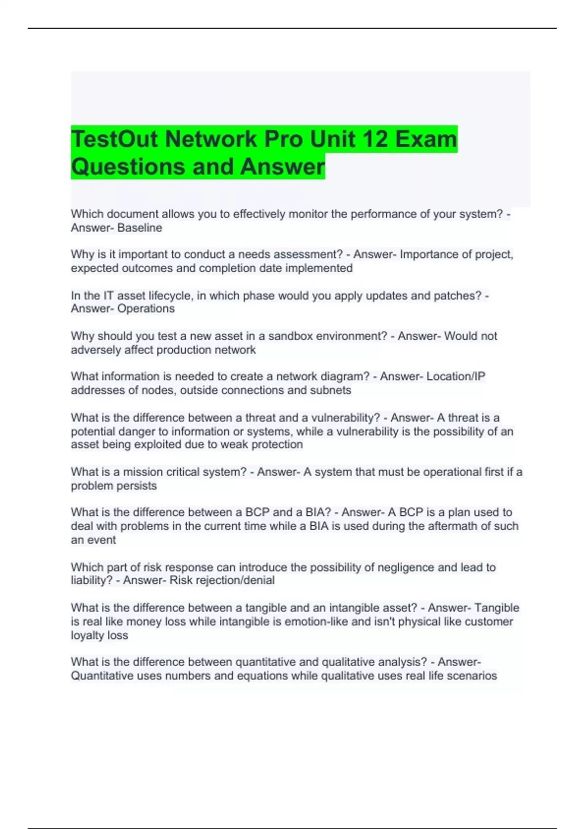 TestOut Network Pro Unit 12 Exam