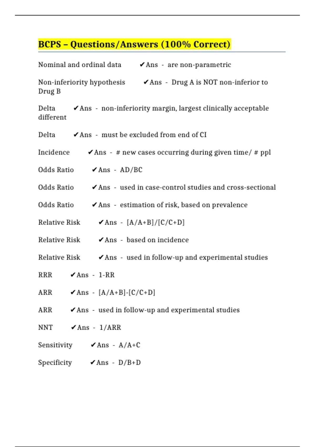 Relative Risk ✔️Ans - used in follow-up and experimental studies