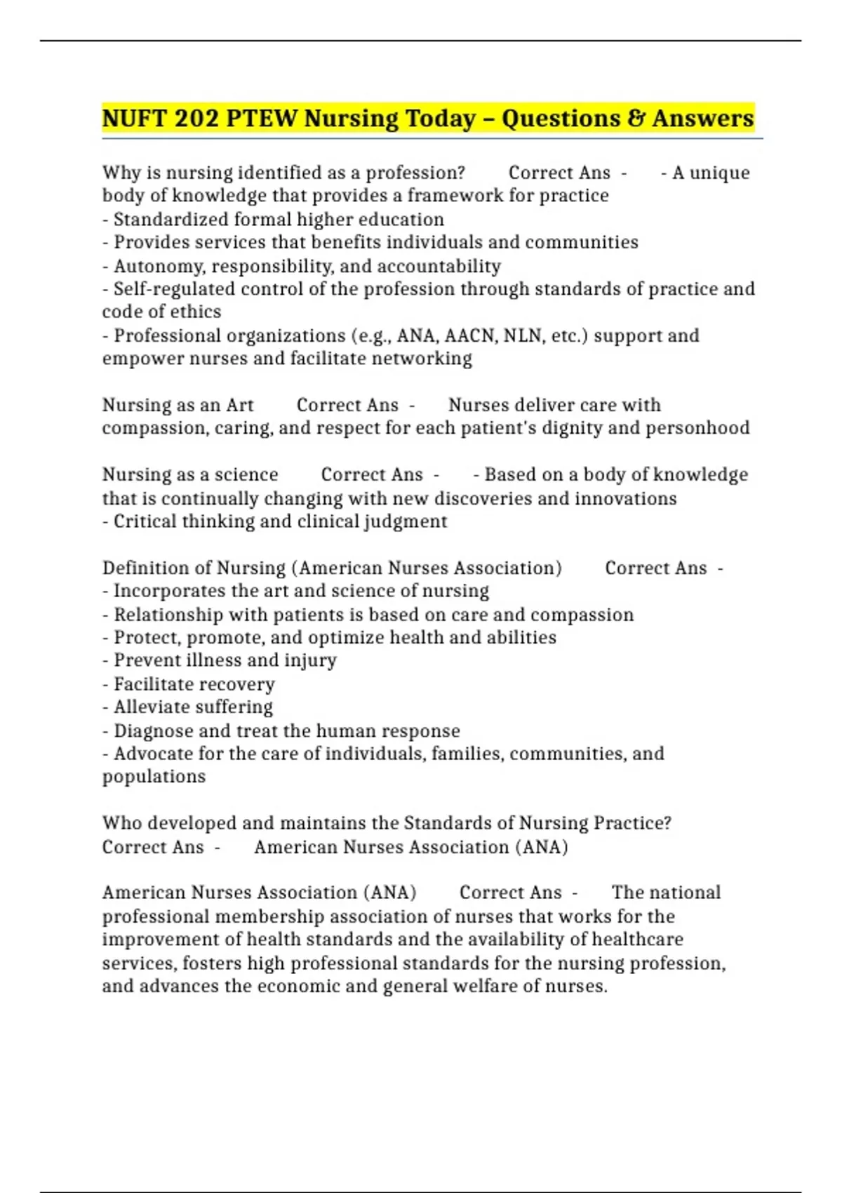 Why is nursing identified as a profession? Correct Ans - - A unique