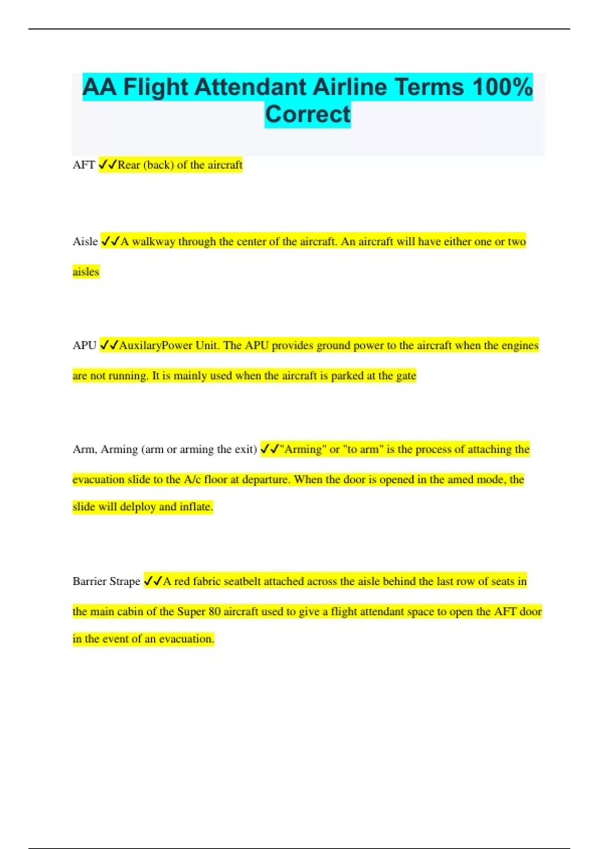 AA Flight Attendant Airline Terms 100% Correct