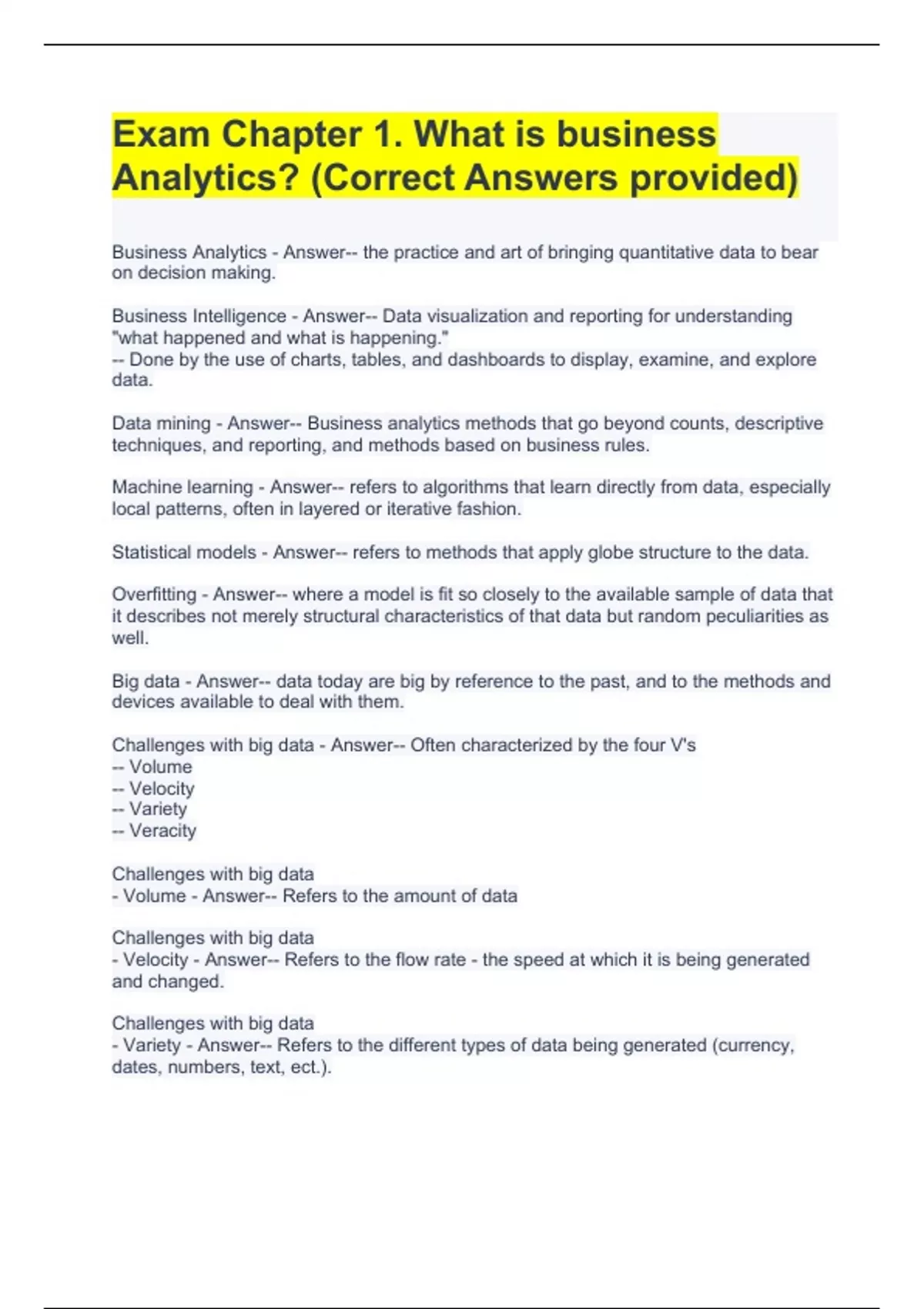 Exam Chapter 1. What is business Analytics? (Correct Answers provided)