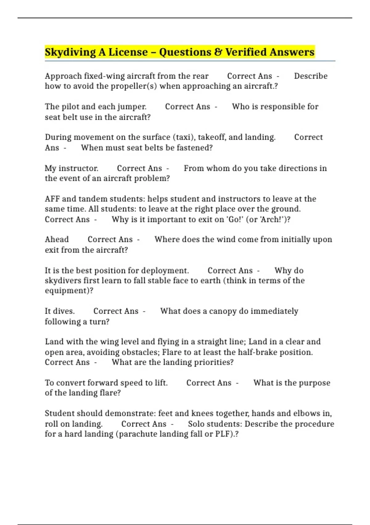 The pilot and each jumper. Correct Ans - Who is responsible for