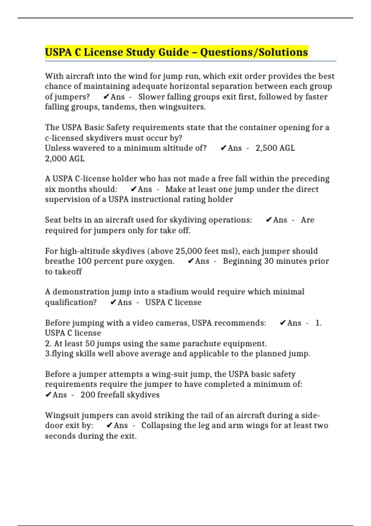 USPA C License Study Guide – Questions/Solutions