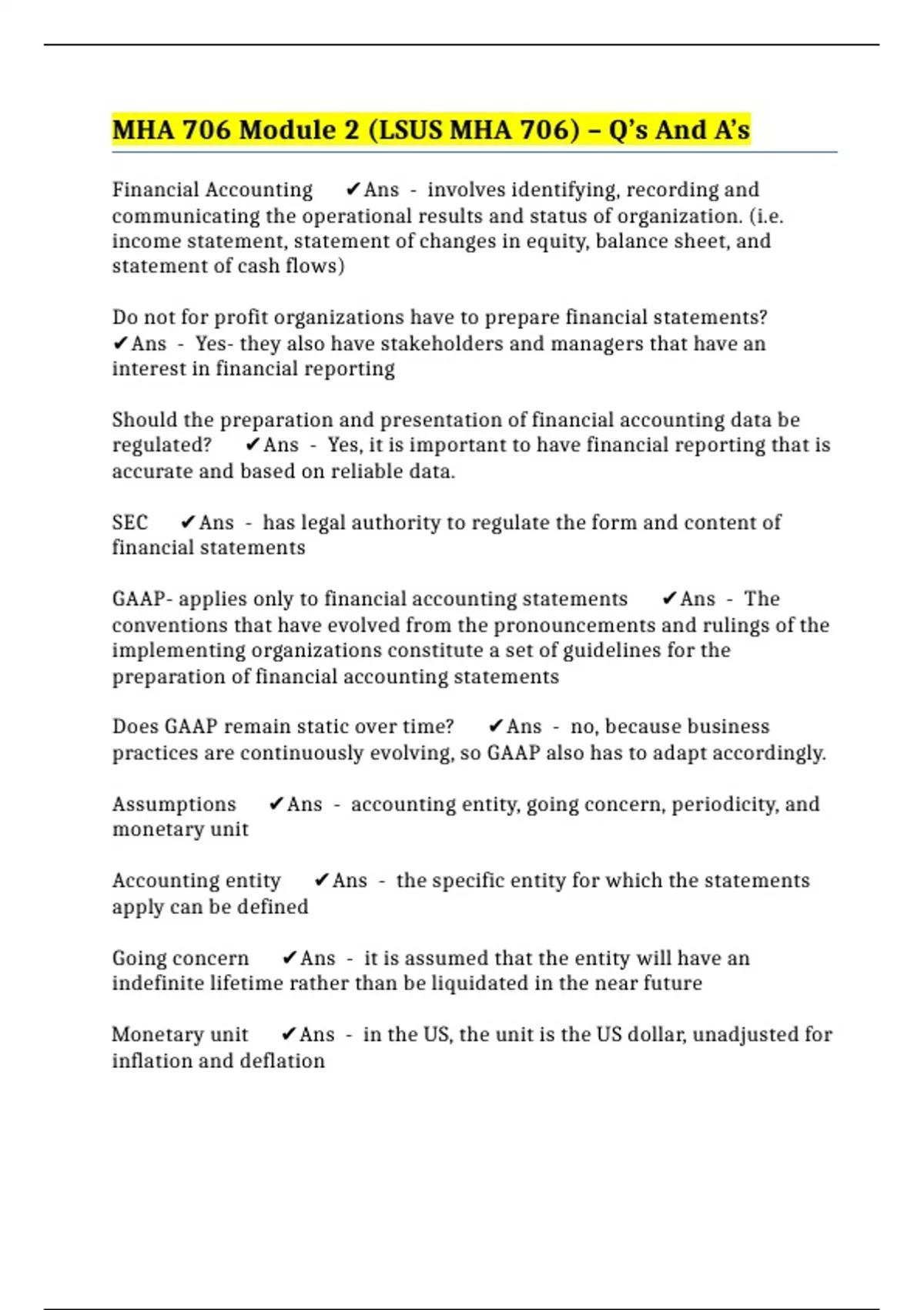 MHA 706 Module 2 (LSUS MHA 706) – Q’s And A’s