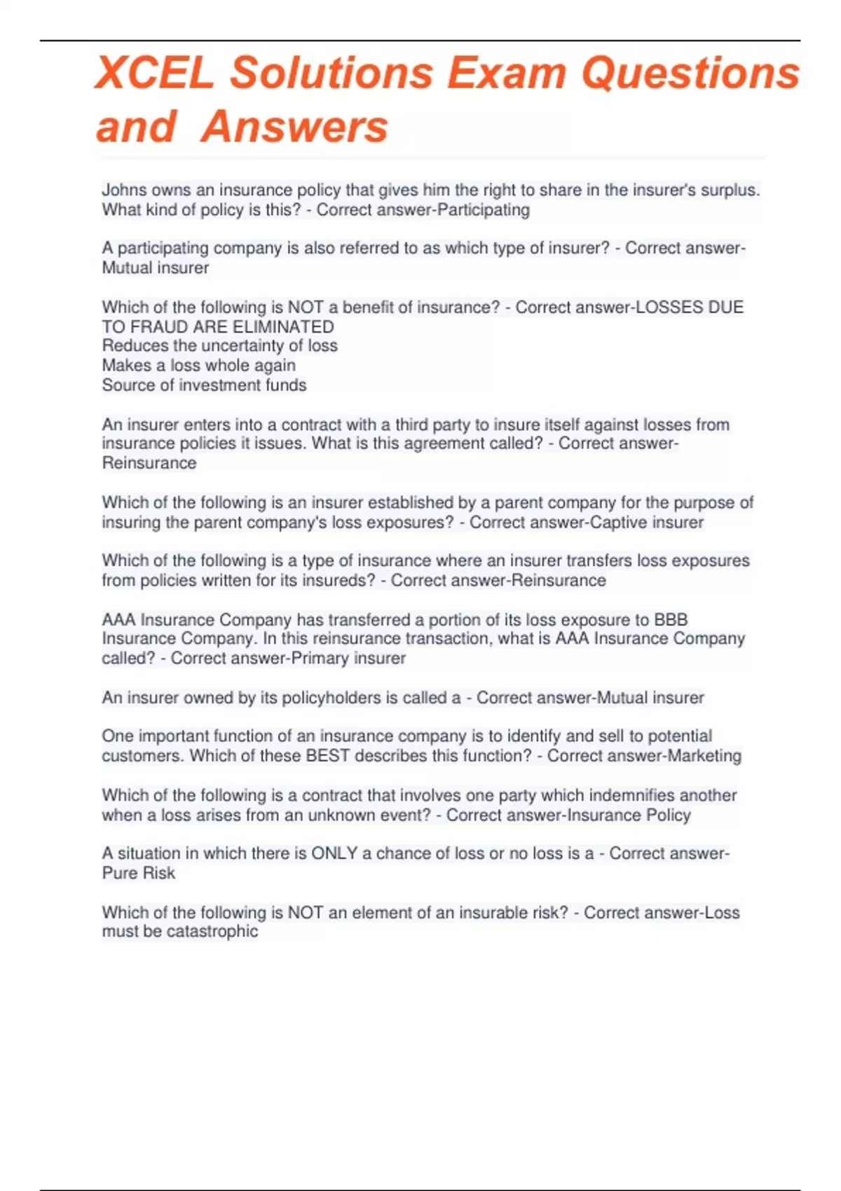 XCEL Solutions Exam Questions with Answers