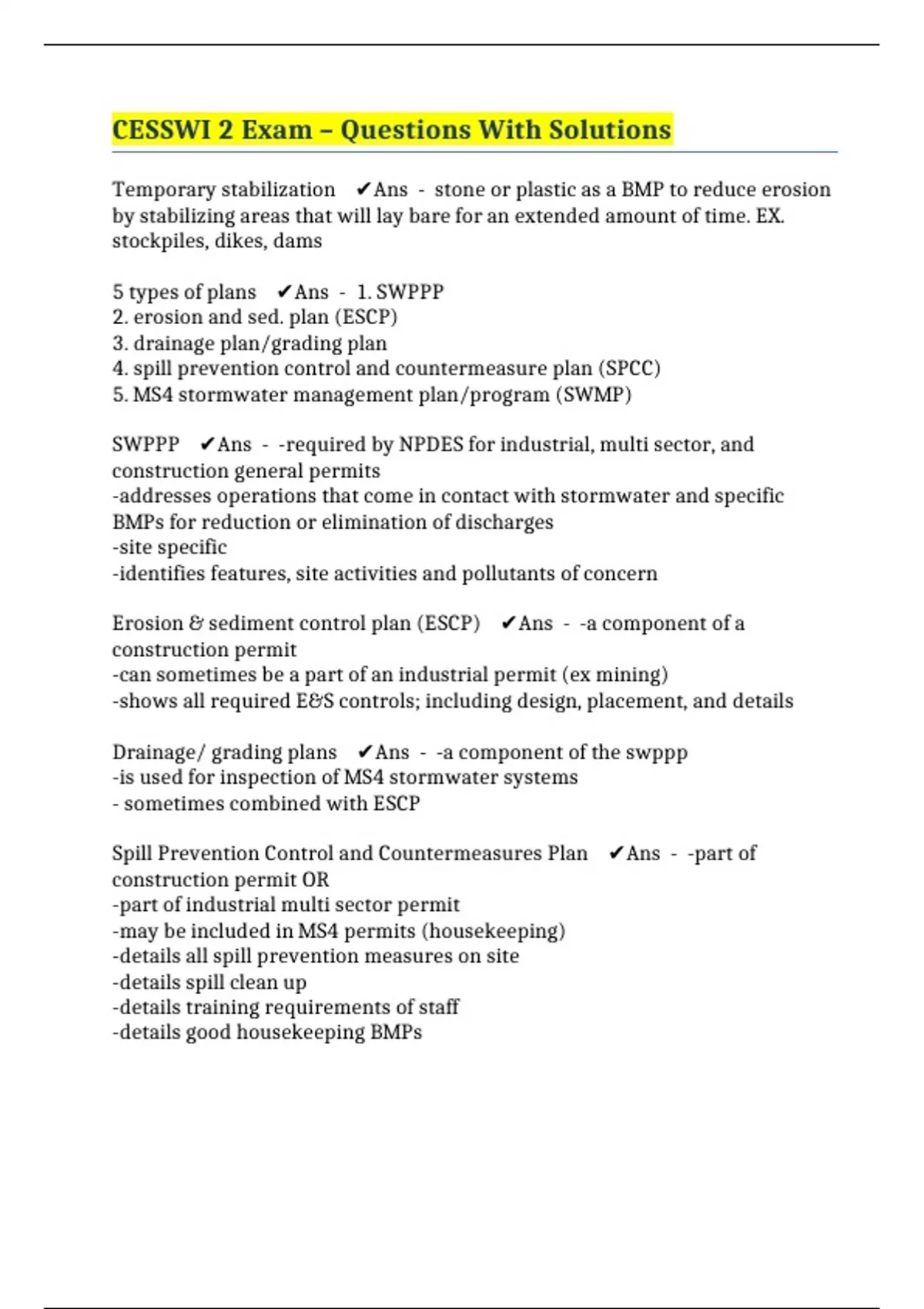 Erosion & sediment control plan (ESCP) ✔️Ans - -a component of a