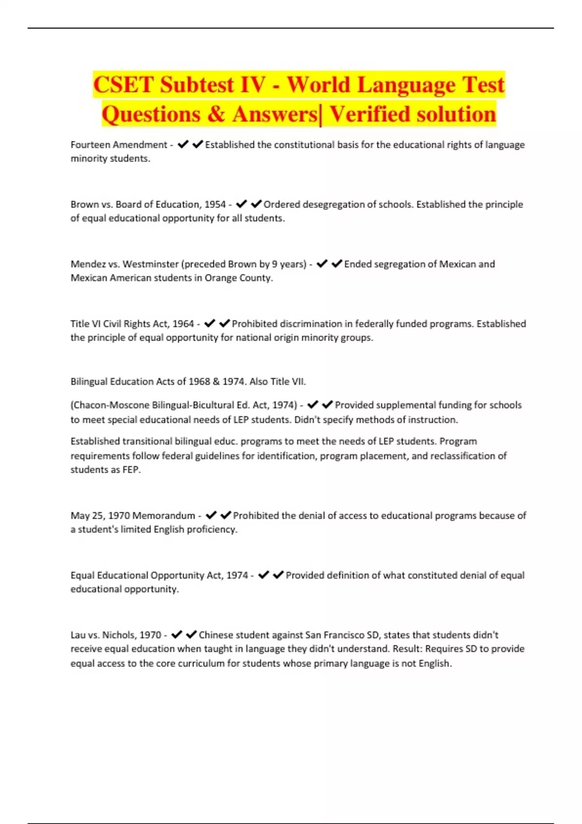 CSET Subtest IV - World Language Test Questions & Answers| Verified solution