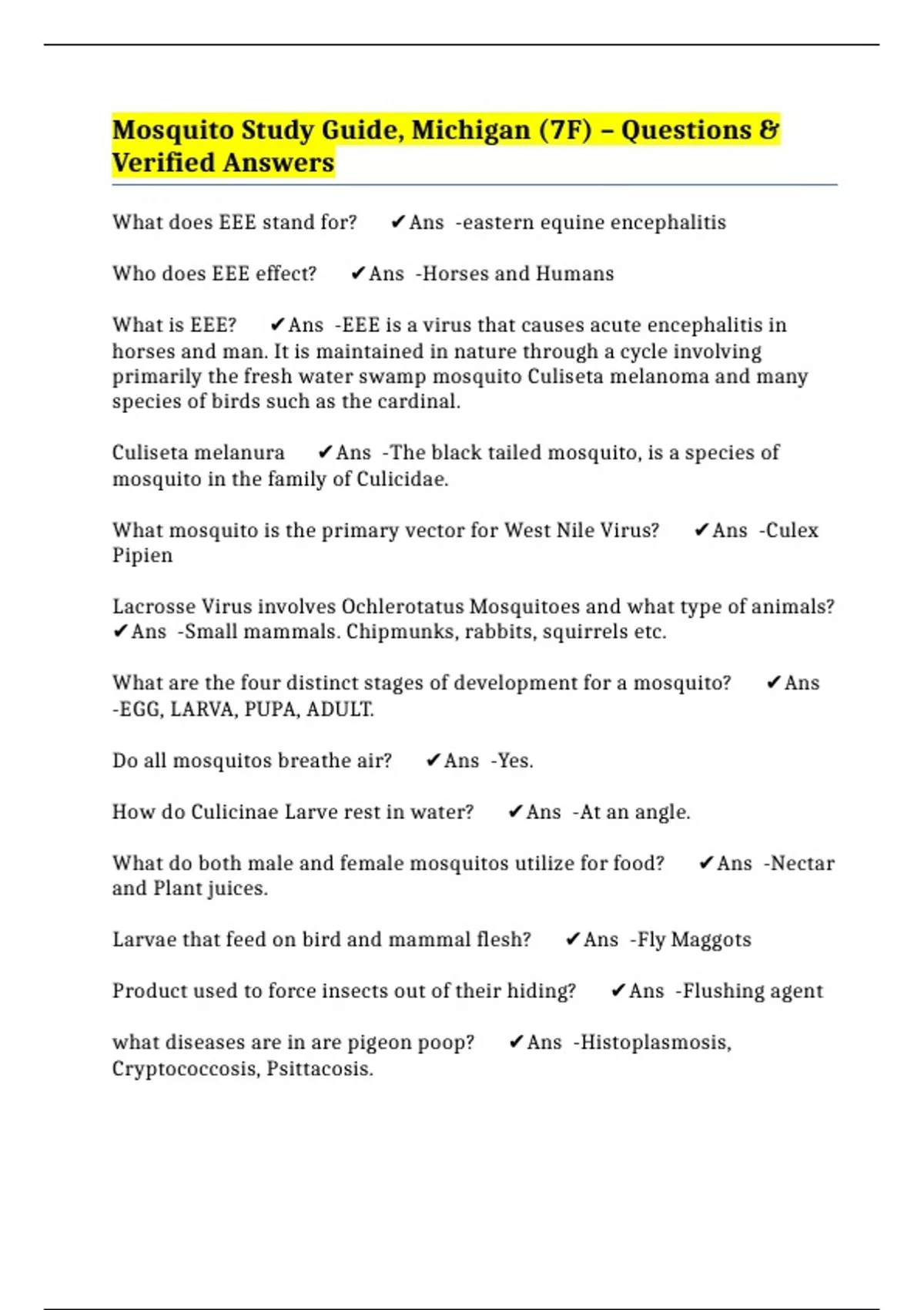 What does EEE stand for? ✔️Ans -eastern equine encephalitis