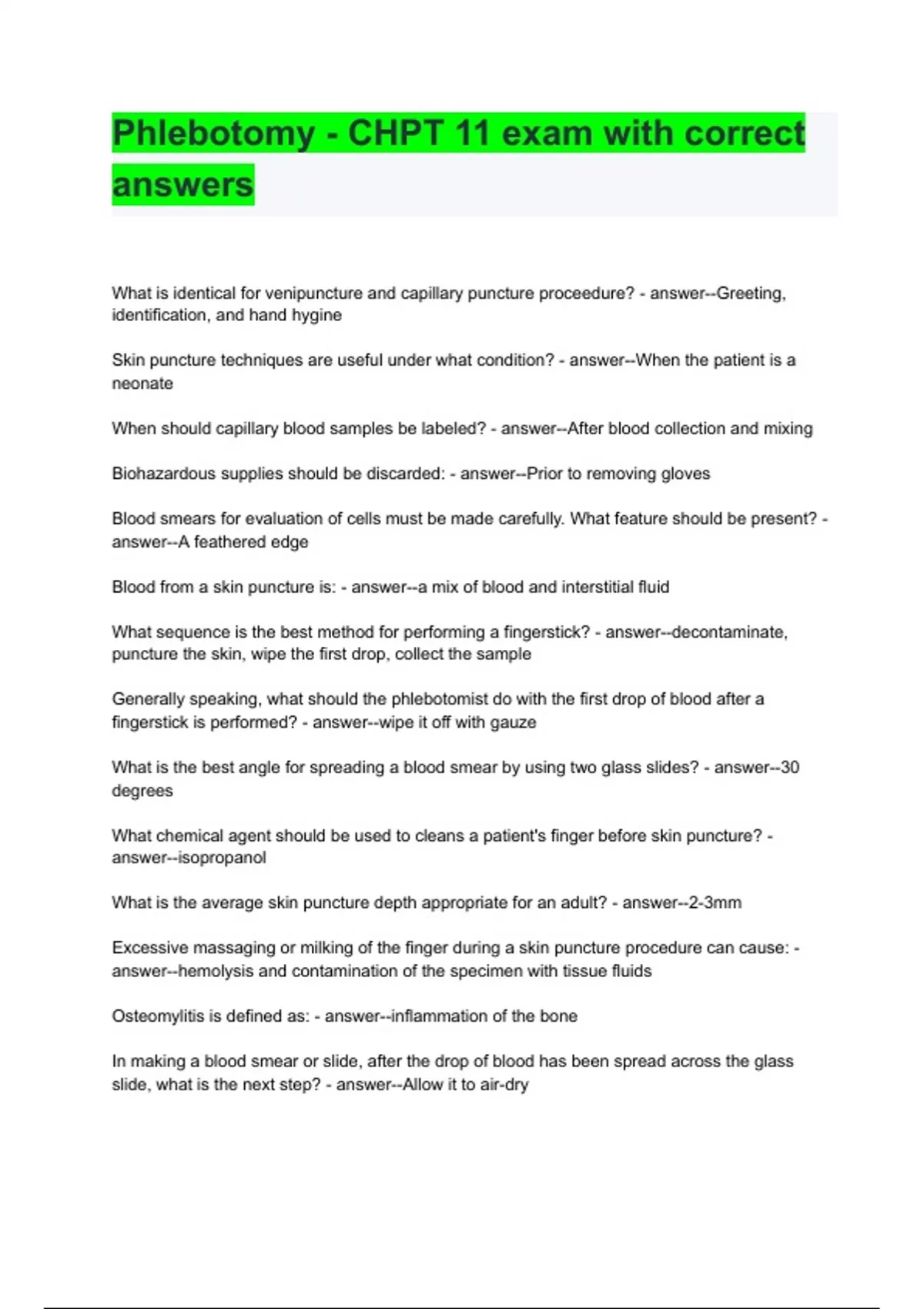 Phlebotomy - CHPT 11 Exm Wit Corrct Ansers