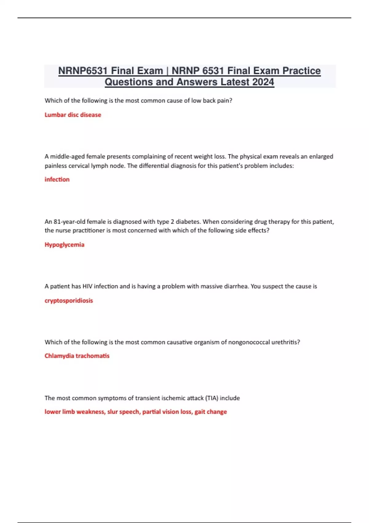 NRNP6531 Final Exam | NRNP 6531 Final Exam Practice Questions and Answers Latest 2024