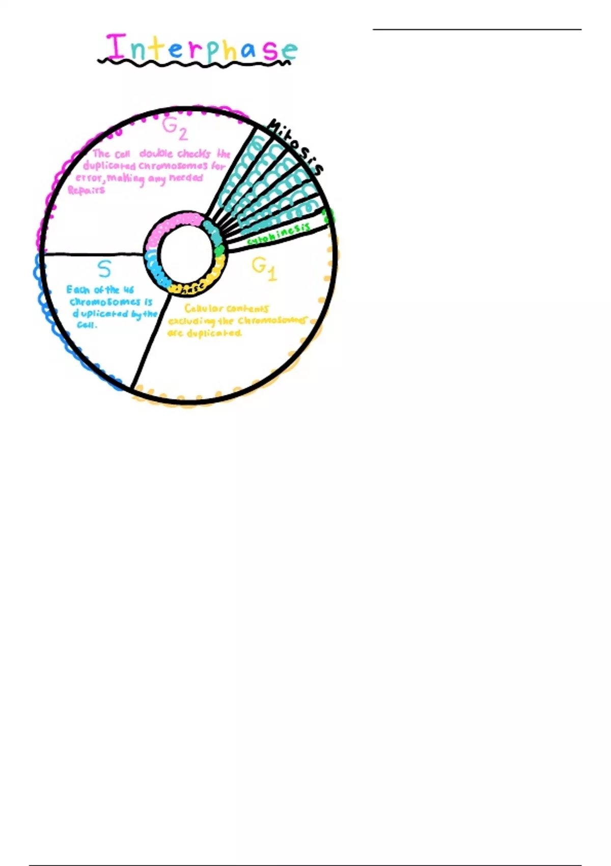 Studying for biology can be difficult, but having a easy and understandable note can make a big difference. This Note on Inter-phase can be used as test review, or a way to gain knowledge on the concept, and it is a great resource when you need a quick brush up on the topic. My note summarizes ideas such as G1, S, and G2 phases. Overall the note is short and simple, but provides big ideas.