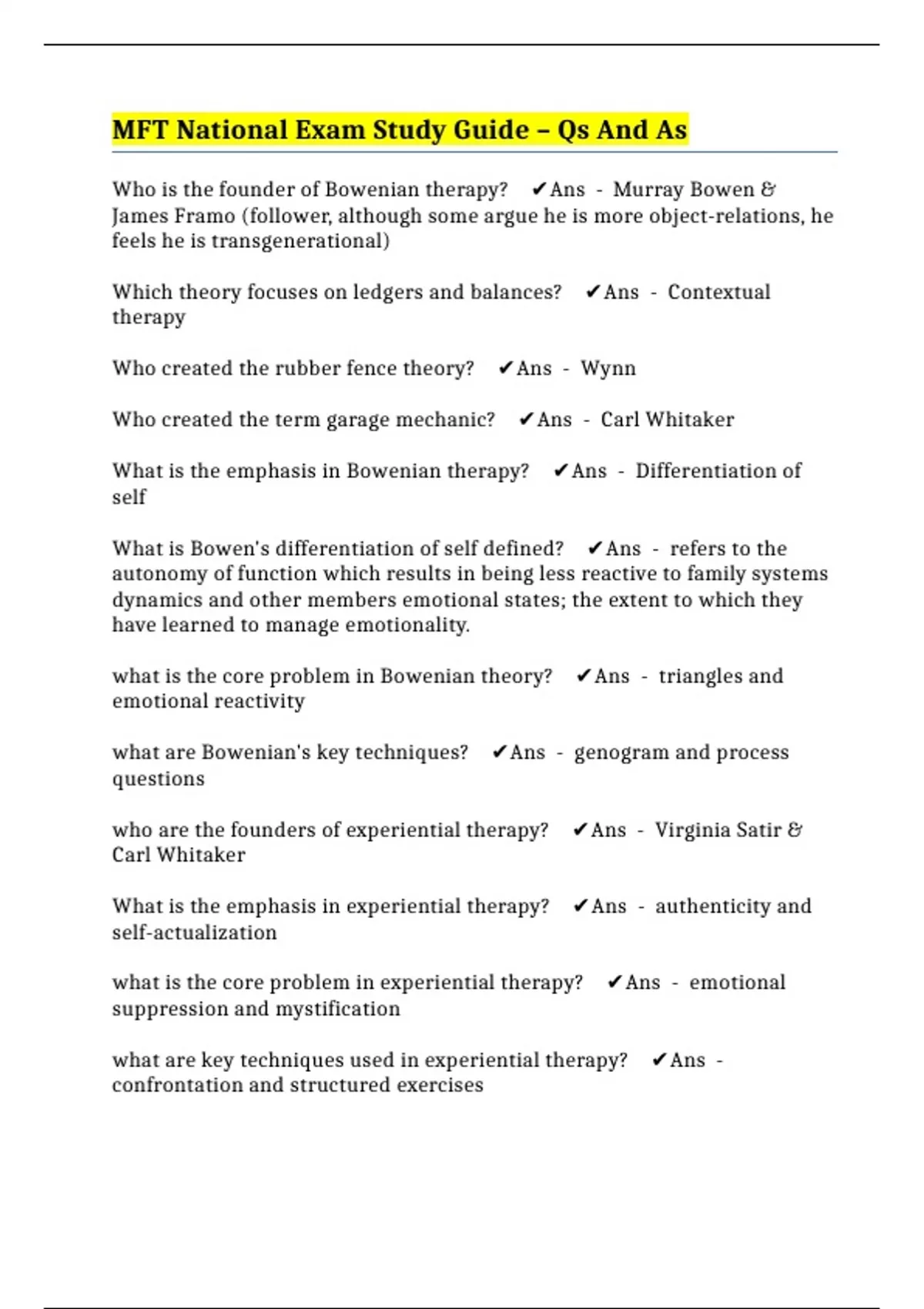 MFT National Exam Study Guide – Qs And As
